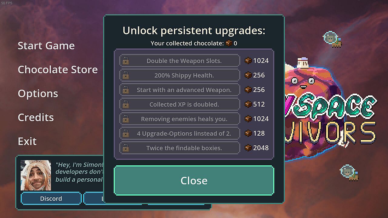 • Unlock permanent upgrades with chocolate (so that losing a run does not feel like wasted time).