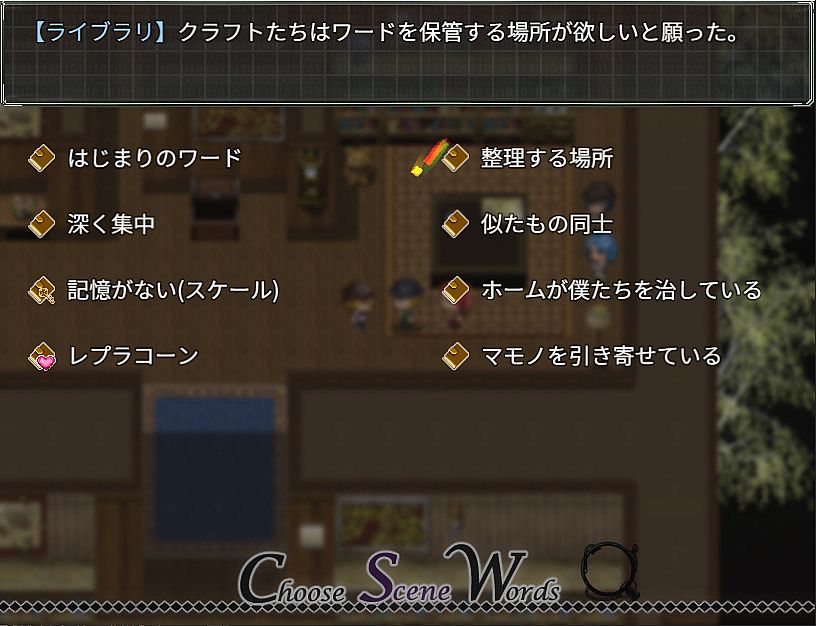 "Craft The Mapcrafter:Gathering Magic Words" is a single-player RPG in which you travel through a different world, collecting magic words "words".
