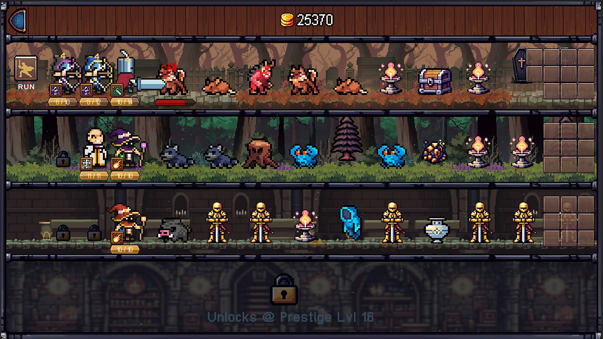 • Send mercs into the dungeon – They’ll fight, you’ll profit (hopefully).
