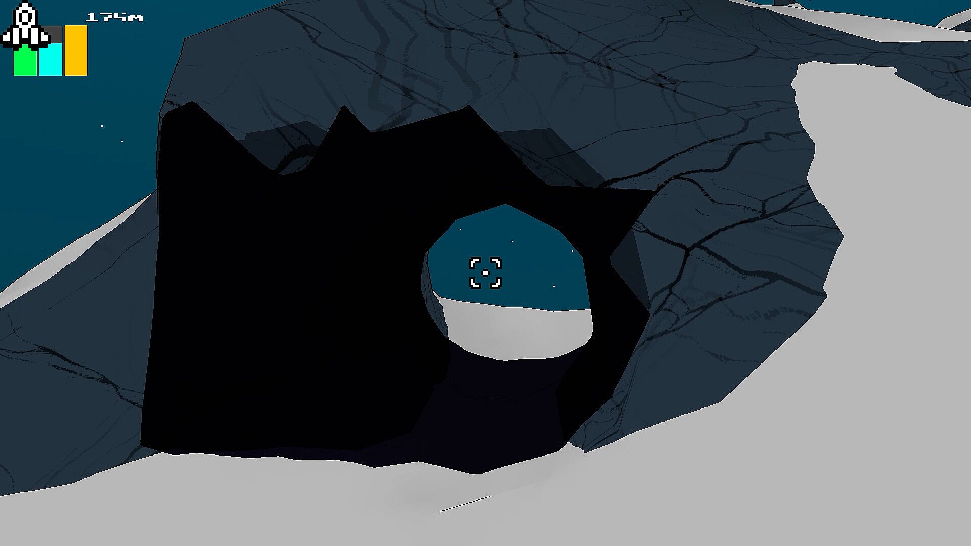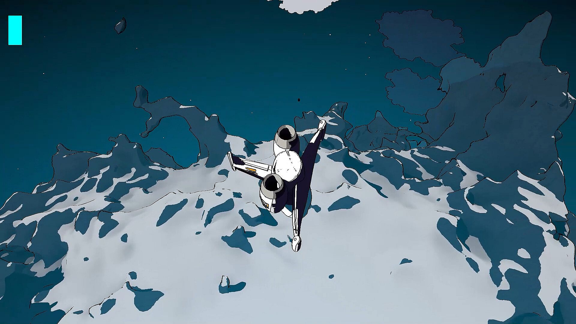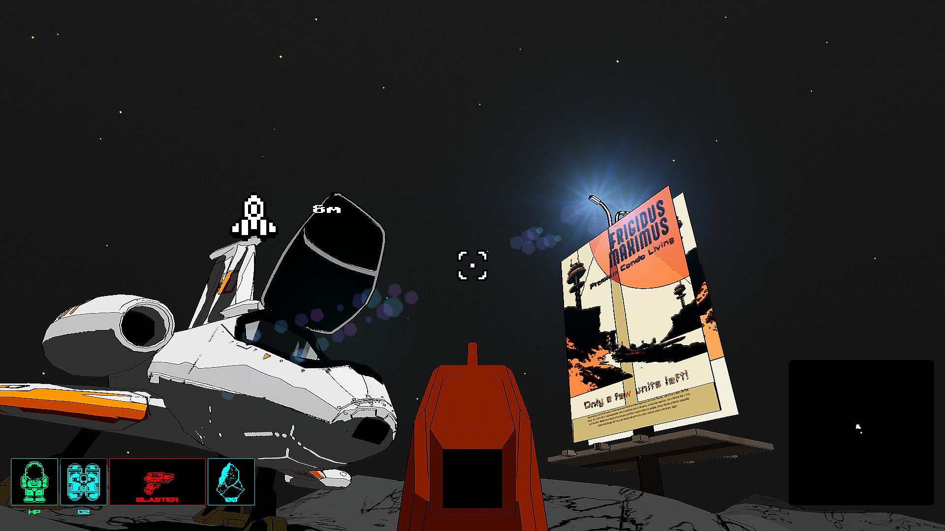 Cratered is a single-player, open-world exploration game with a distinct illustrative style. Players can travel between planets in the star system and land on them. It's played in first-person while on foot and in third-person when flying your space ship.