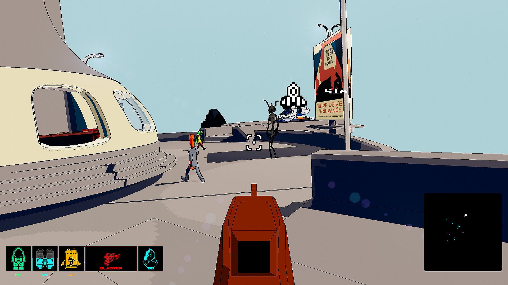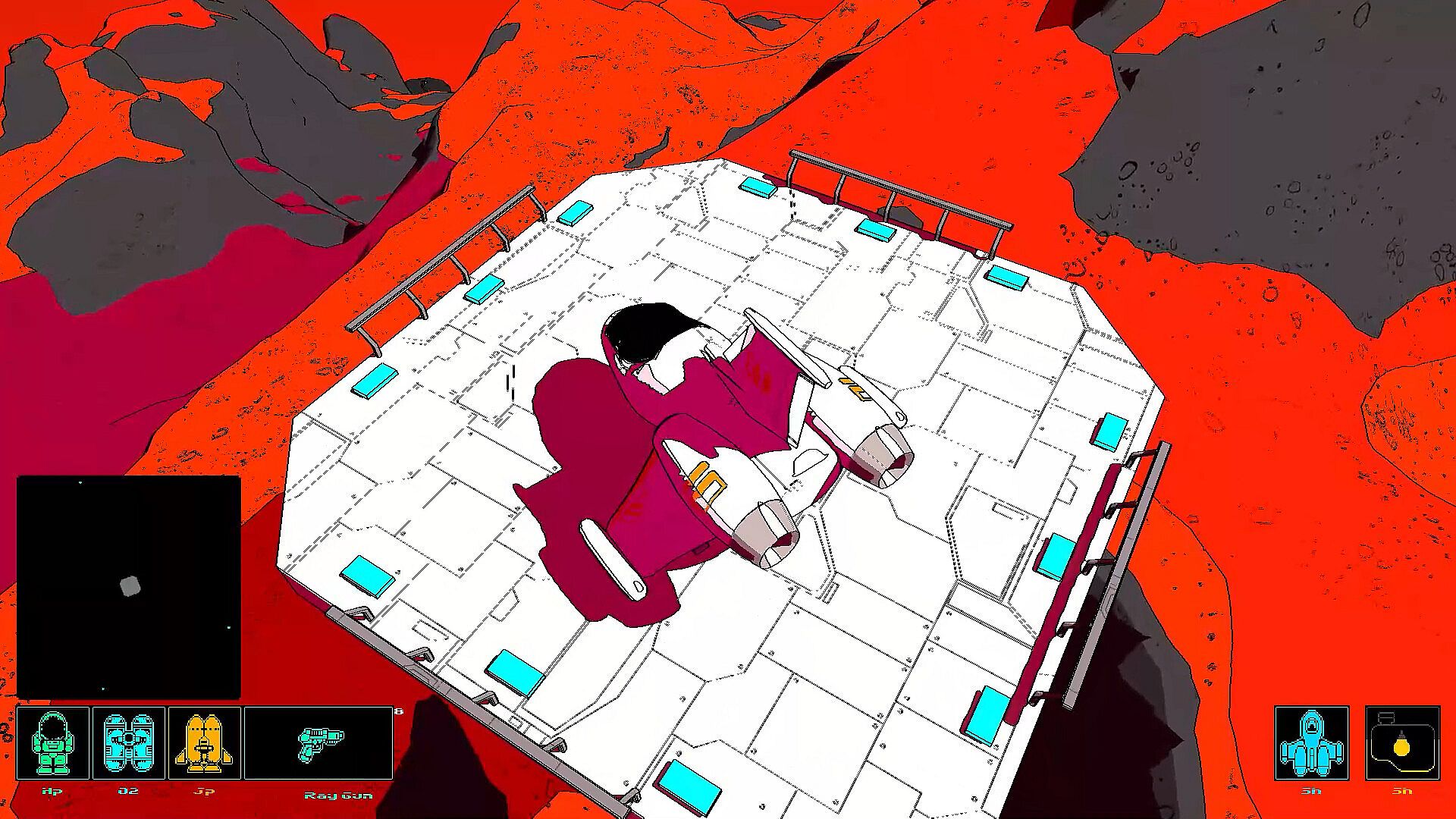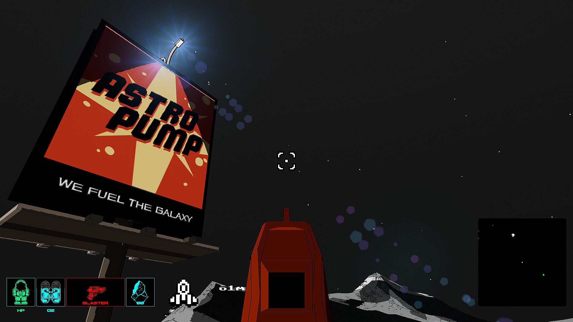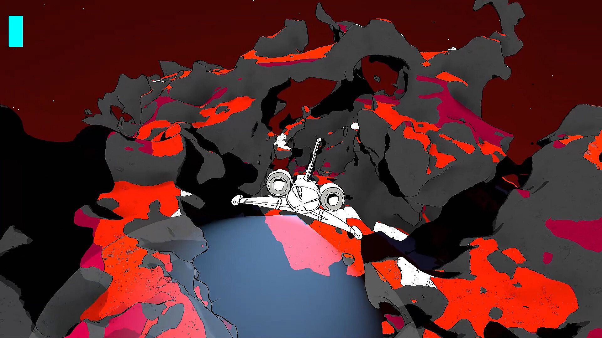 Cratered is a single-player, open-world exploration game with a distinct illustrative style. Players can travel between planets in the star system and land on them. It's played in first-person while on foot and in third-person when flying your space ship.