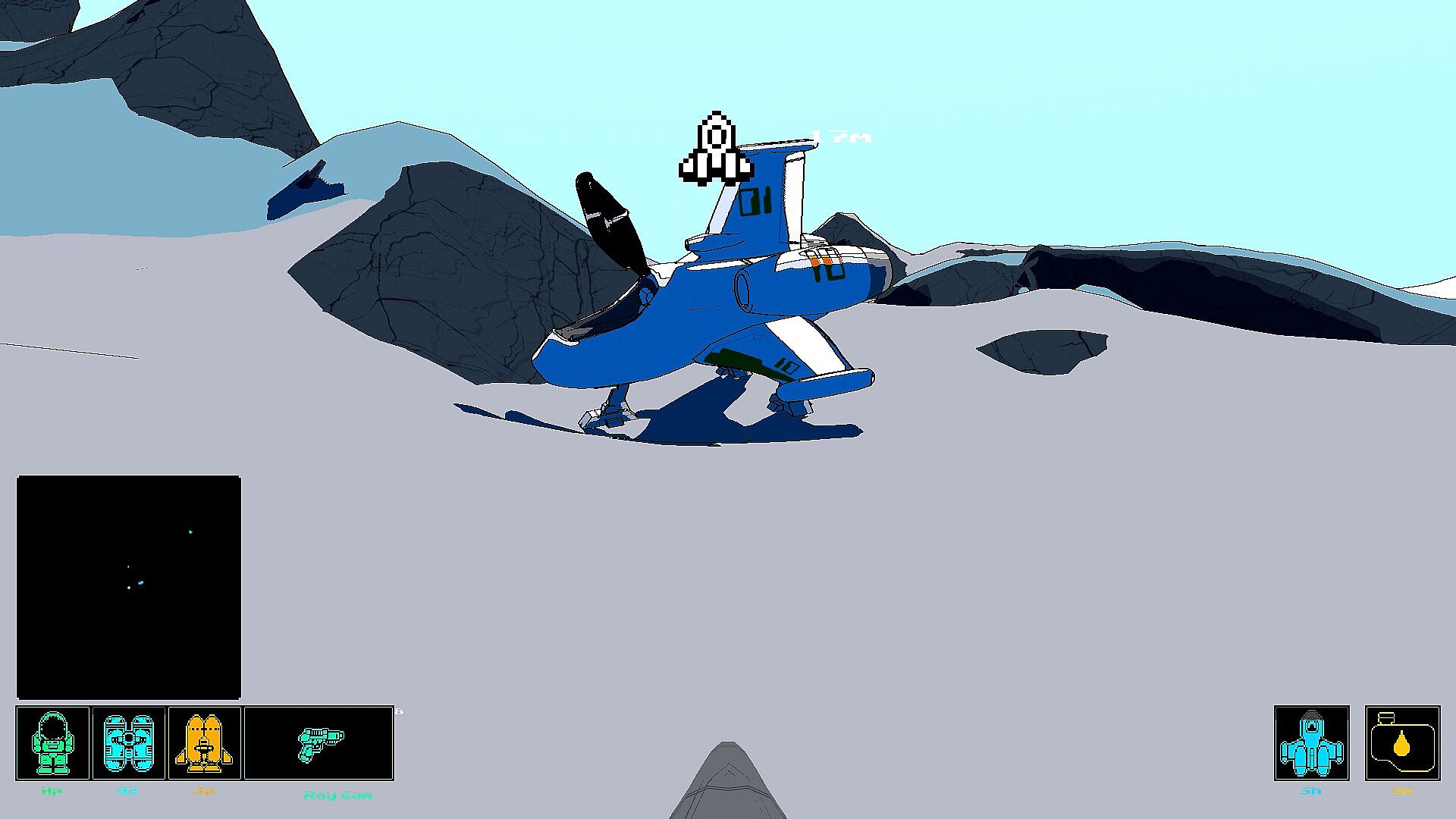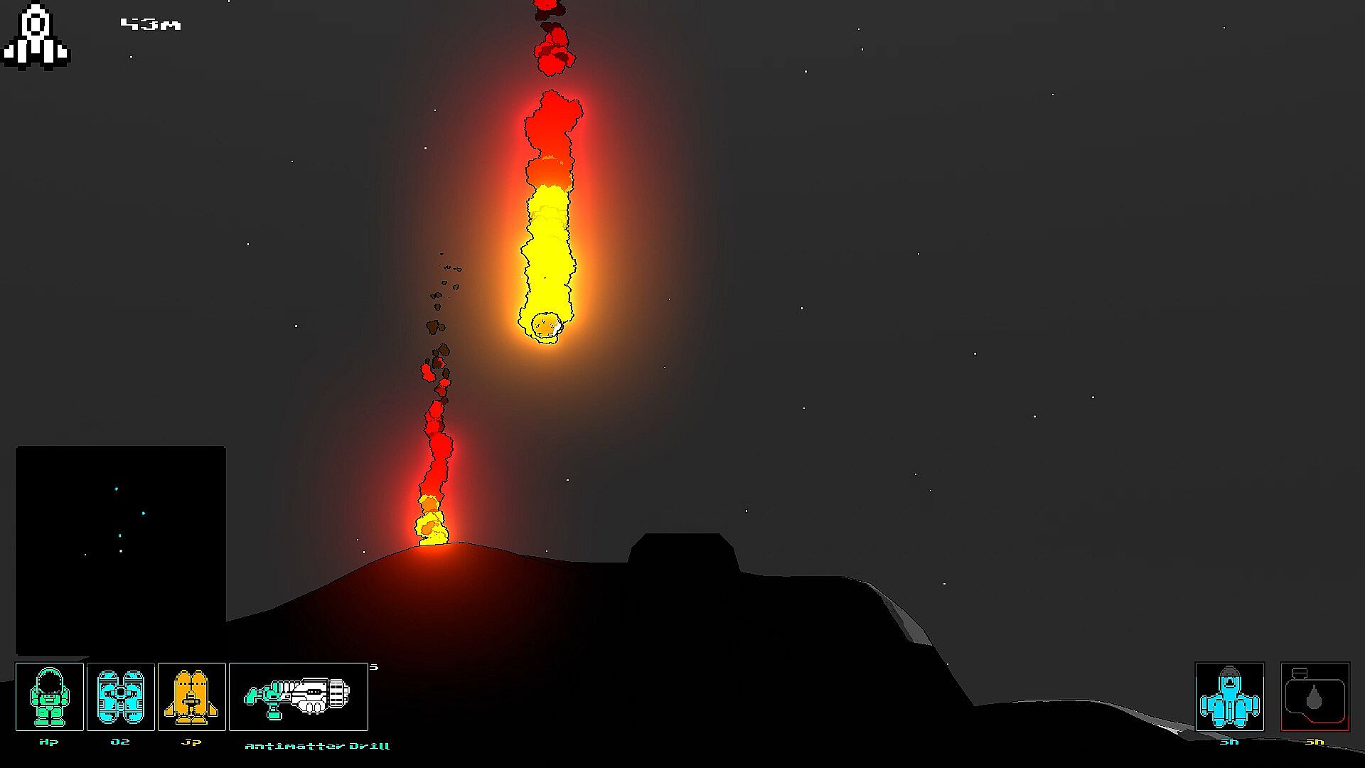 The player is able to use tools to dig into the surface. Meteor storms, explosions and ship collisions affect the terrain and makes craters on the surface. Using the mini-map, the player can find hidden items buried under the surface. Some planets have creatures that burrows underground.