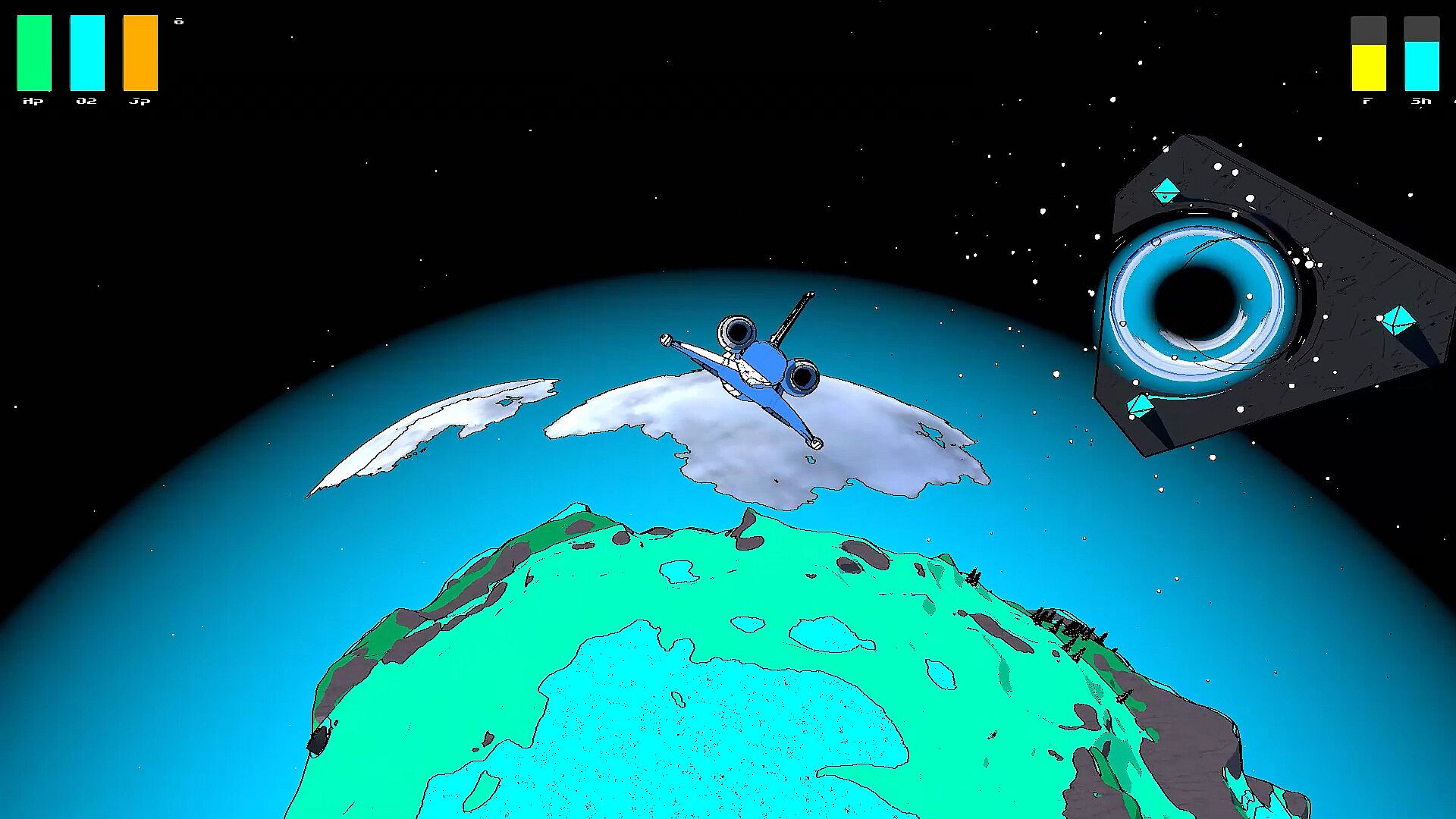 Explore your surroundings using your ship and on foot, just make sure to watch your health and oxygen levels. Find refueling stations to refuel your ship. Watch out for meteor showers, hostile drones and dangerous plant life. By finding and unlocking mysterious warp gates, you can travel between the 7 planets in the system. Some have alien life on them and maybe, one of the planets hold the answer to how to get you home.