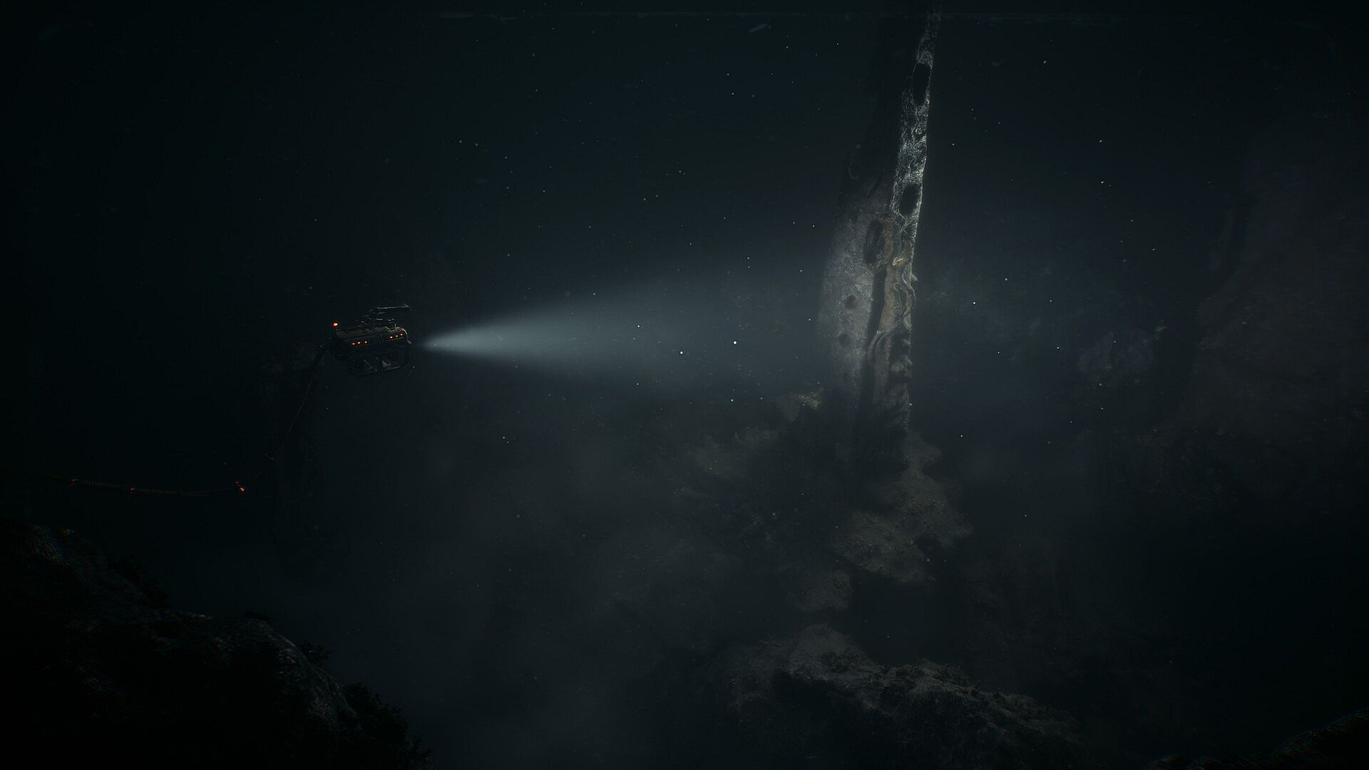Discover the oppressive oceanic scenery of Crathos Deep at your own pace, in the exact order you want. Through immersive piloting, you will come across various abandoned research facilities, grim seabed vistas, and mysterious eldritch remains.