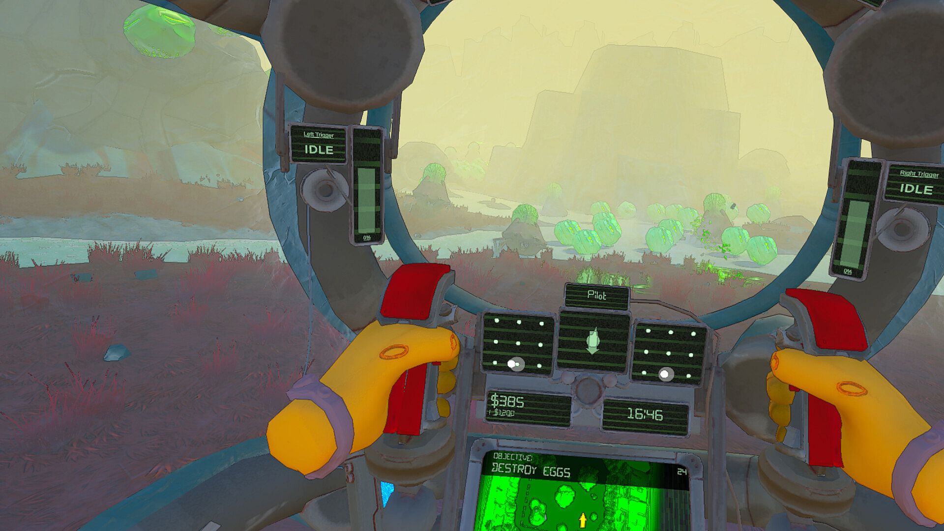 CRAWLER is designed around chaotic co-op action with two players. One brawls as the driver, while the other strikes from the turret. Communication and teamwork are mandatory for optimal bug extermination.