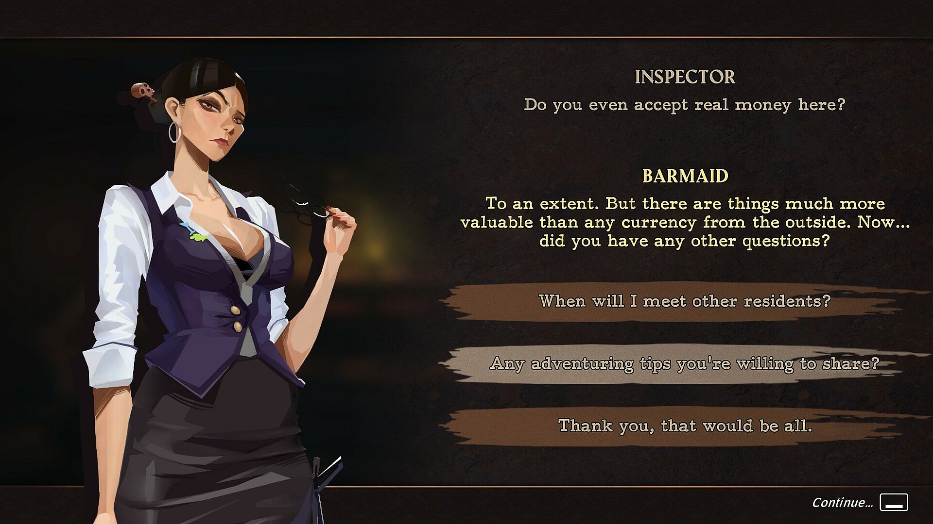 • Choices matter: the others are stuck, but you can still move forward, unravelling the threads of their unfortunate fates. Will you advise your new comrades to do what they want? Or will you suggest they search for what you think they need?