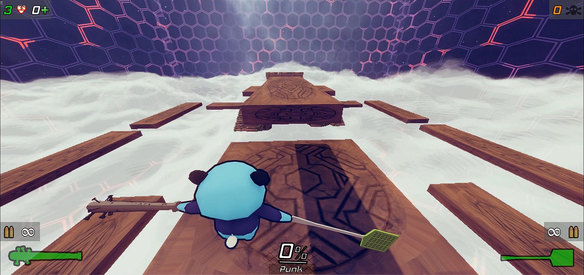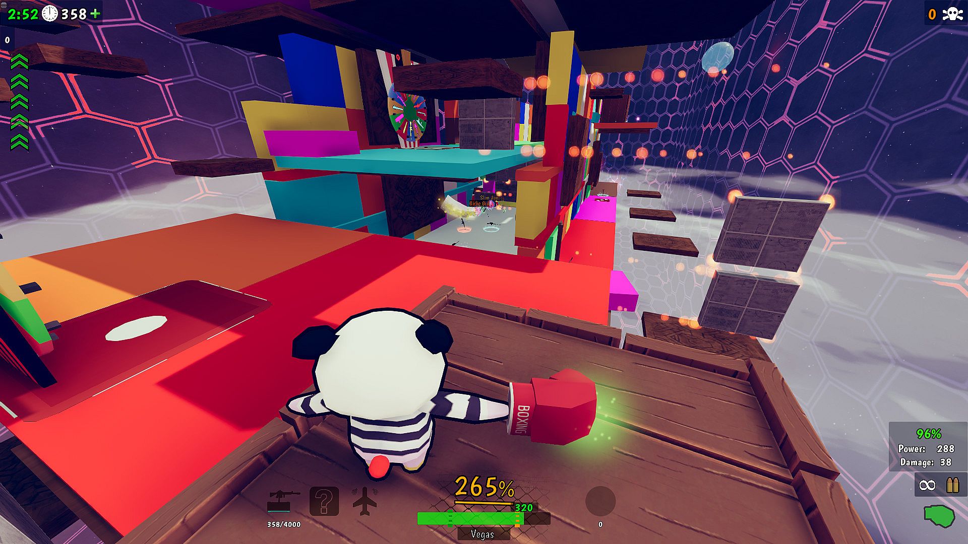 Use your melee weapons as wings and take to the skies. Requires timing your arm flaps correctly, also different melee weapons are more useful than others for flight. Flyswatter - great upwards lift, Boxing gloves - not so great lift