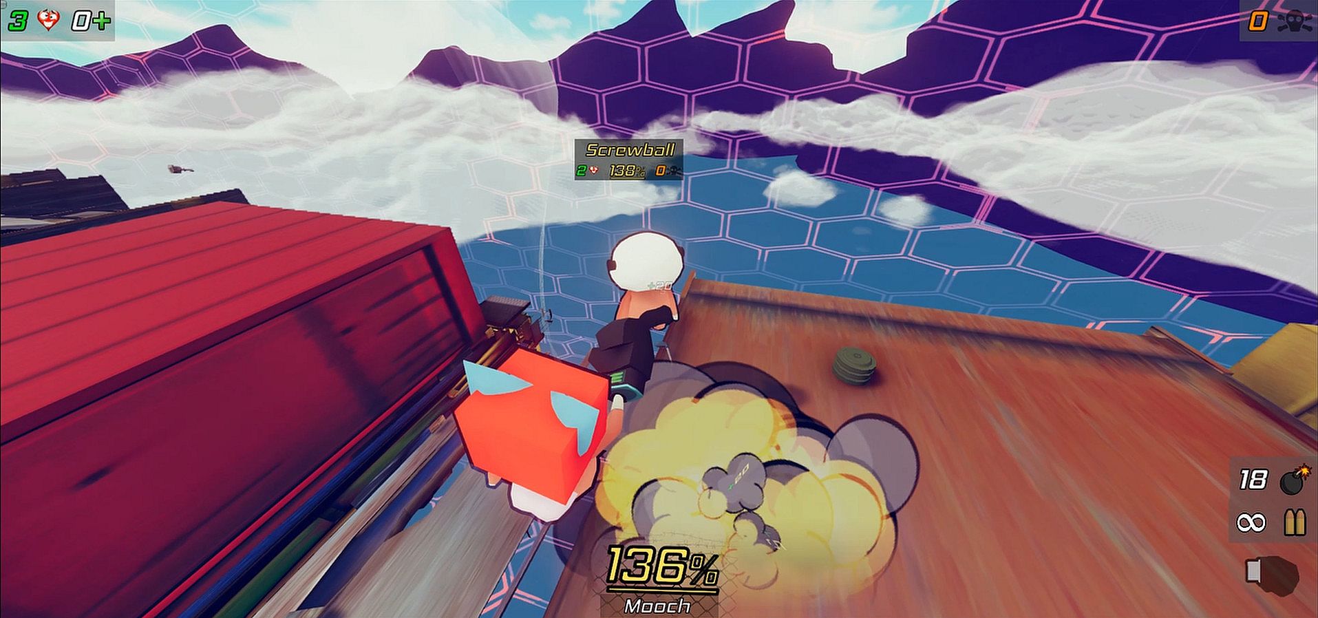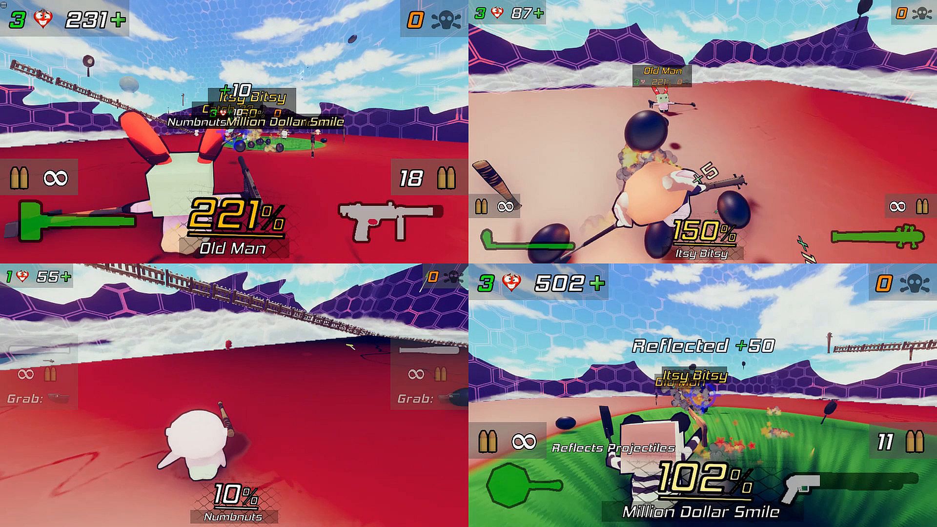 Each hit, bullet, or explosion you take raises your percentage.