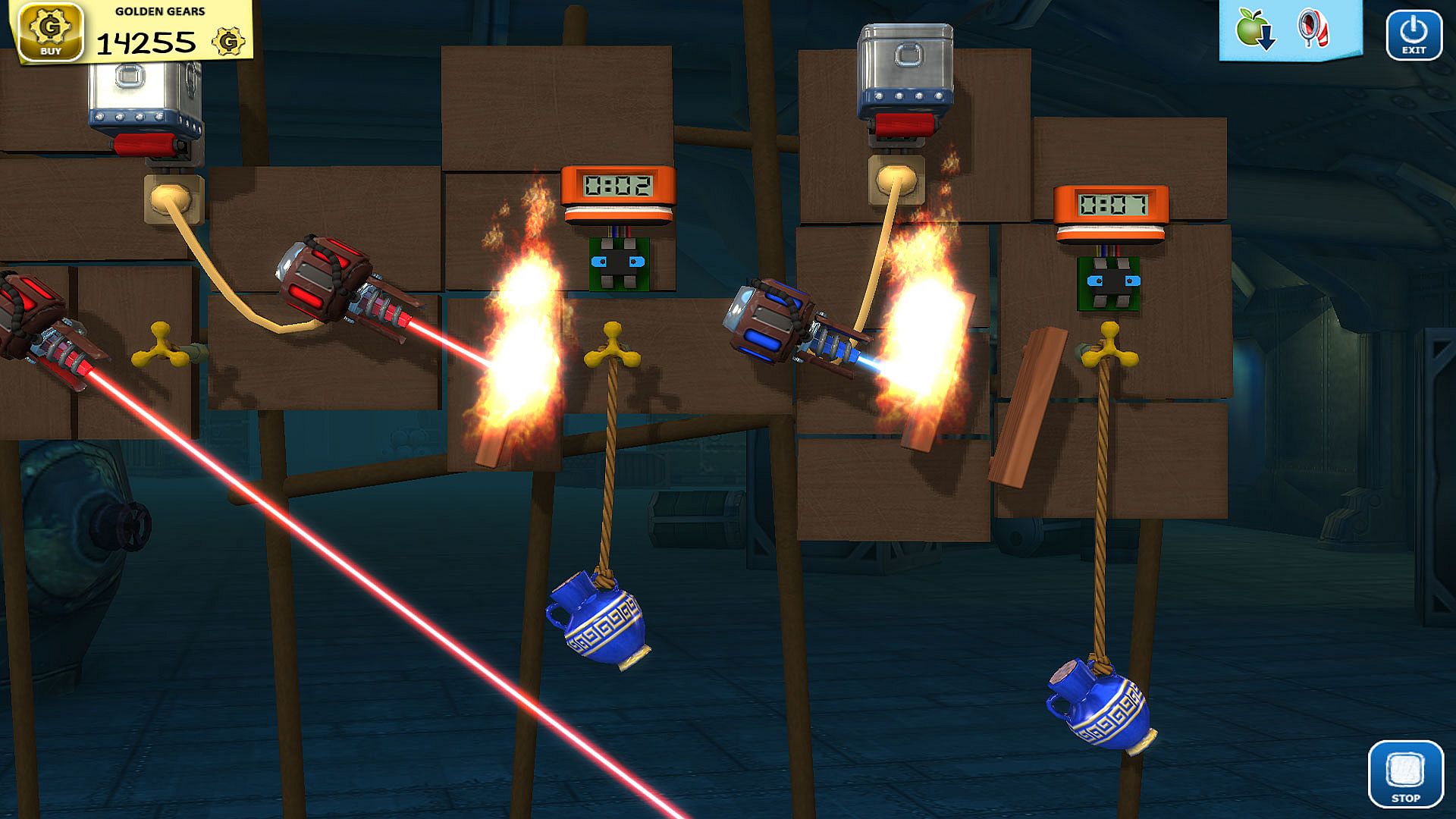 In this "Rube-Goldberg" style puzzle game, experiment and build your wacky contraptions with physics action like never before! Experience dazzling visuals of explosives, fire, and true to life physics behavior when you put the experiment into motion!