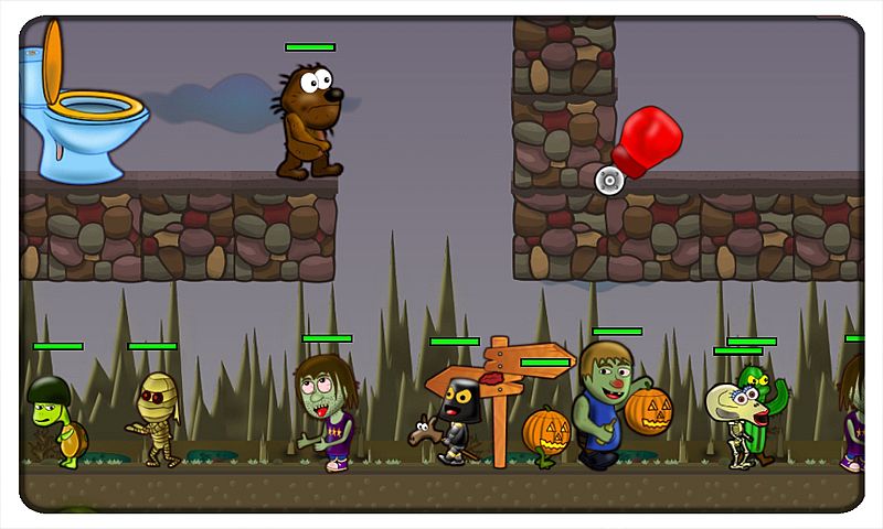 Crazy Mob is 2 GAMES IN 1: DEFENSE AND RUNER WITH MONSTERS THAT MAY GO ON THE CEILING!