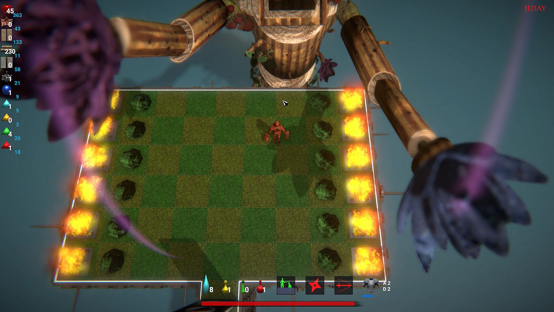 -You'll build a village from nothing, choosing from over twenty types of buildings. You'll gather resources in four procedural worlds, filled with unique enemies and surreal environments.