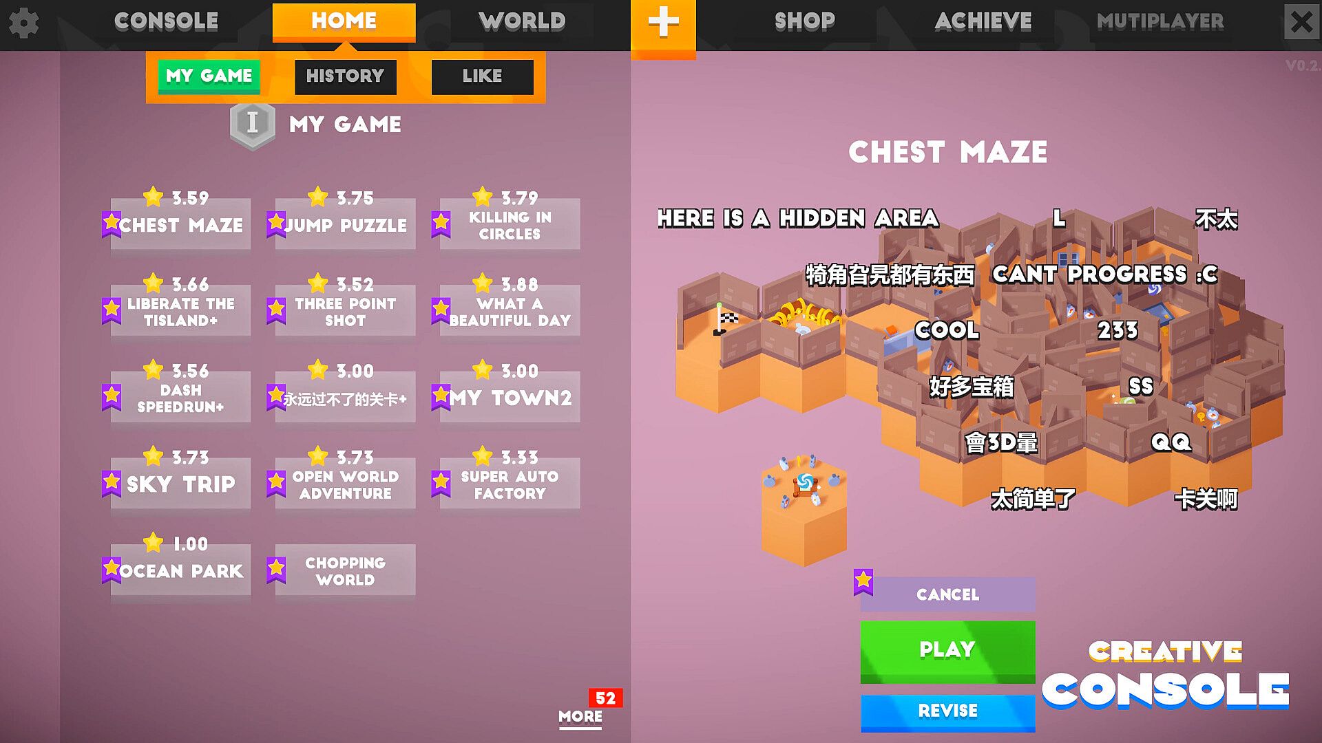 Join the community: become a member of the creative game console community! Please be sure to try other players' games, and you will definitely get inspiration from them!