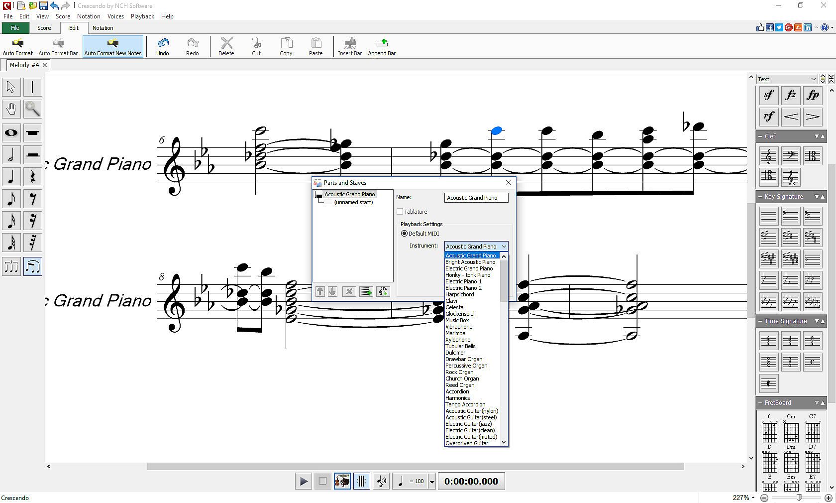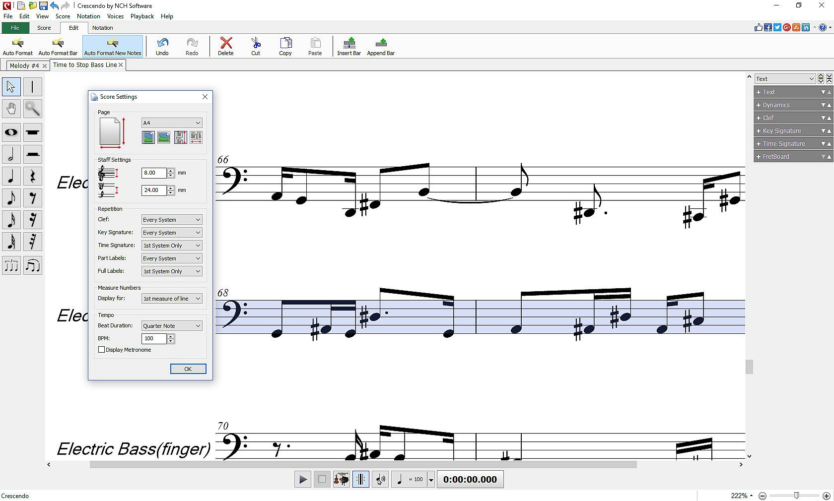 - Change the time and key signatures