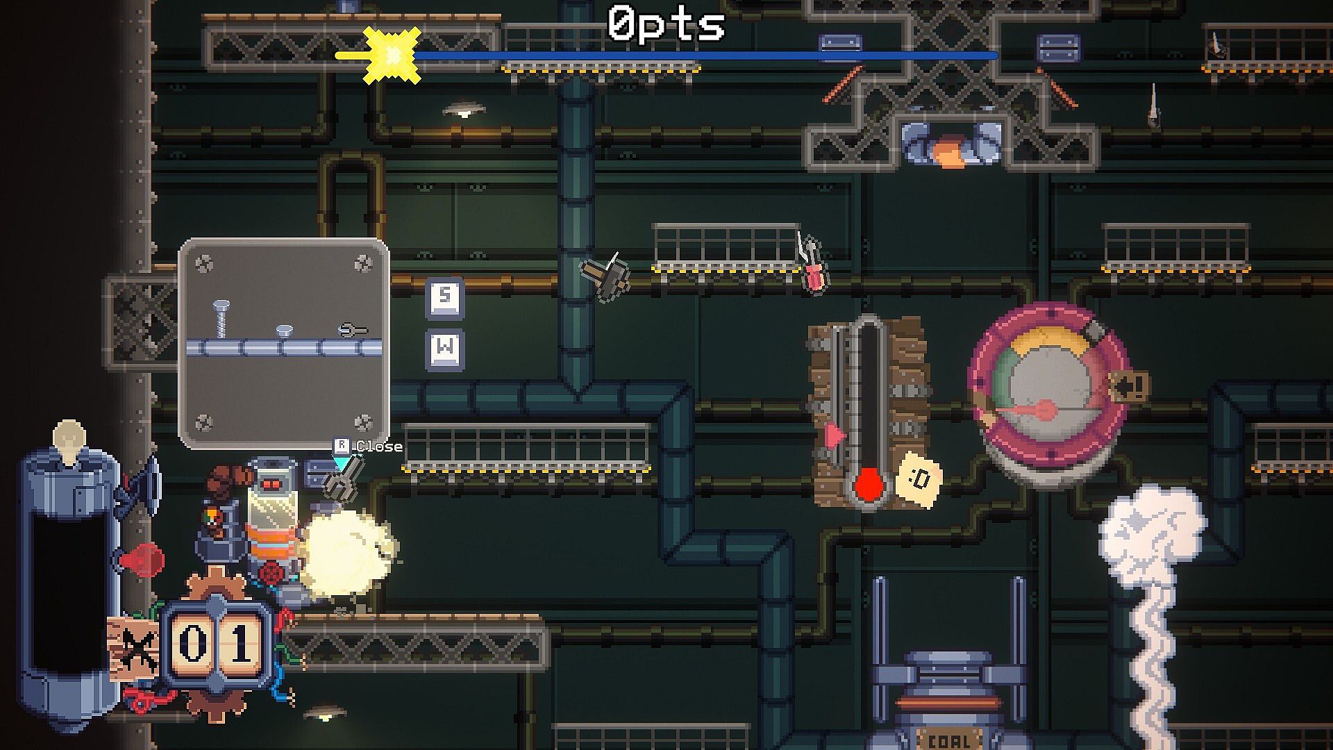 • Manage heat and pressure: as the heat rises, machines break down faster. Points increase, but so do mistakes! Pressure creates environmental hazards that can only be handled through valves — but be careful: lowering pressure also reduces heat.