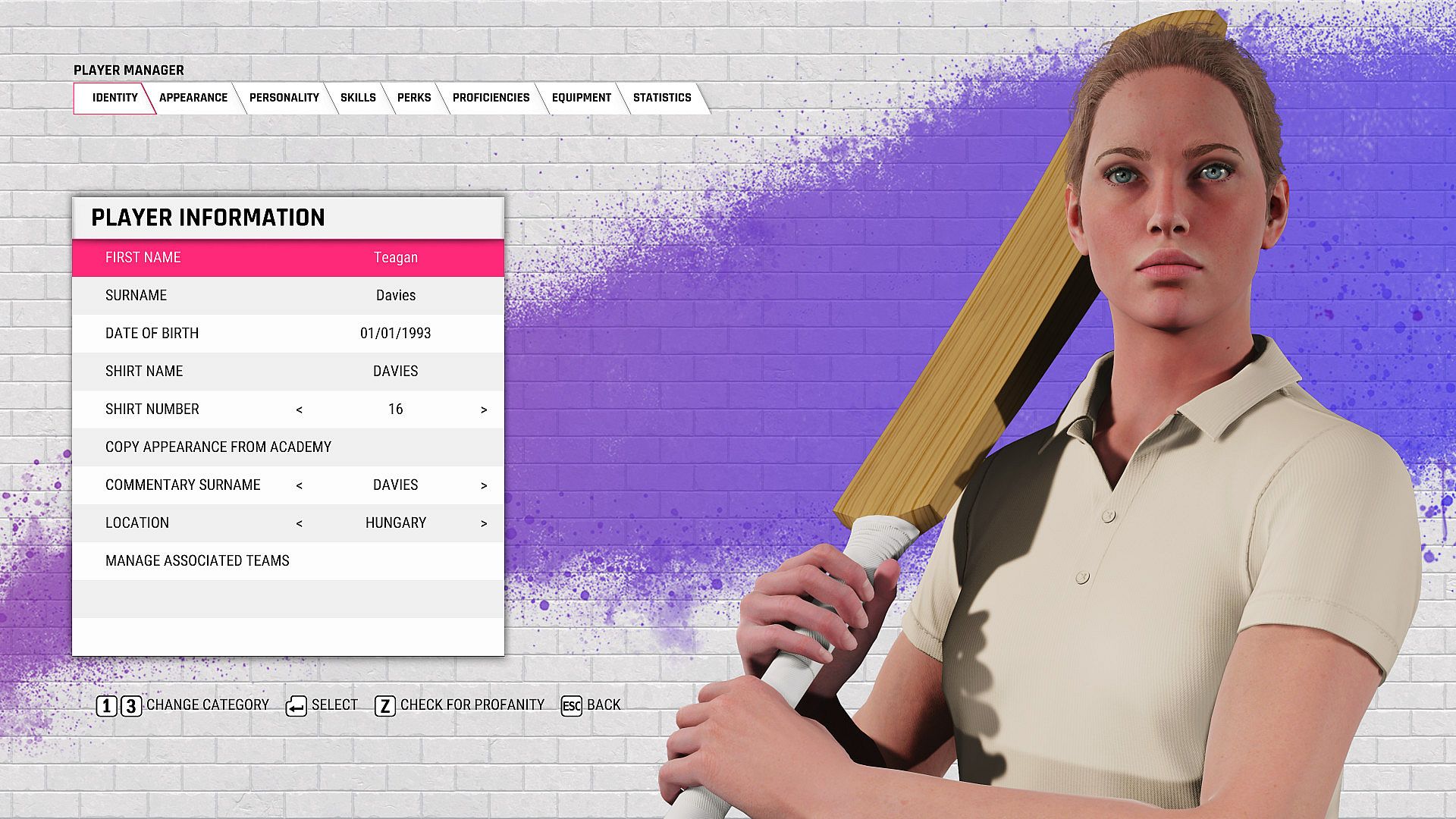 • Players. Create your likeness within Big Ant’s celebrated in-depth creation tools.