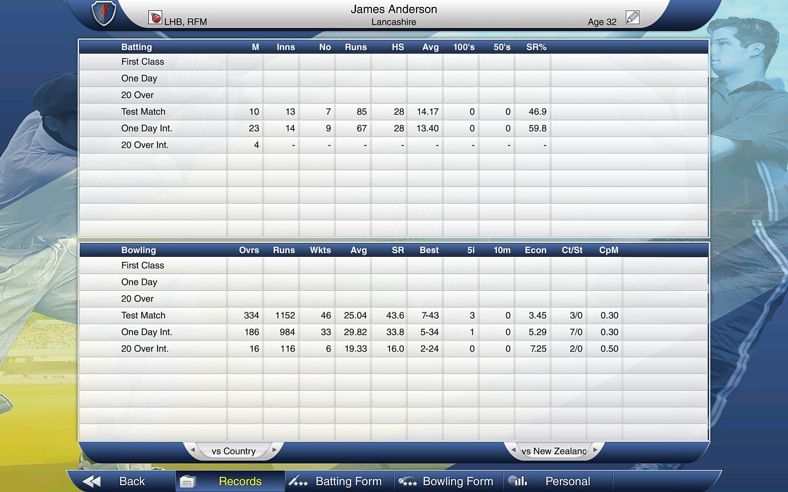 • Improved Match Engine: modelling aggression and changes to 1-day and first class games.