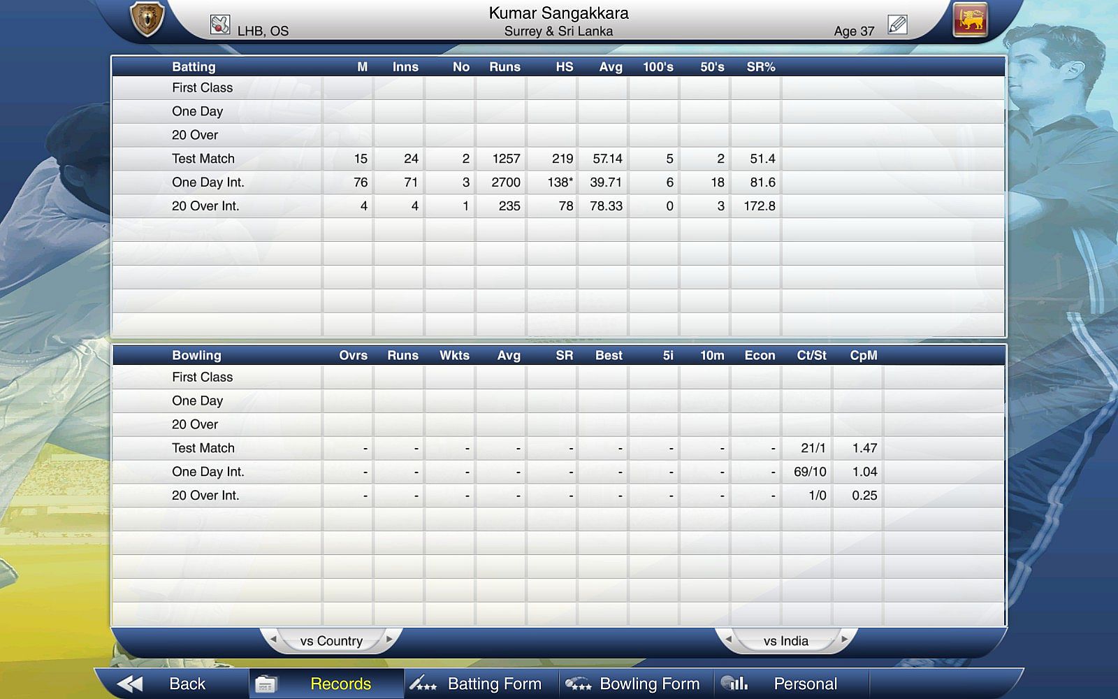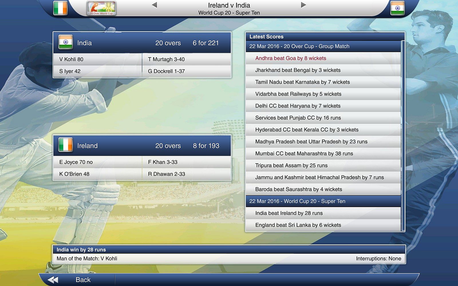 • Indian Domestic System: play as any one of 27 teams in all three formats.