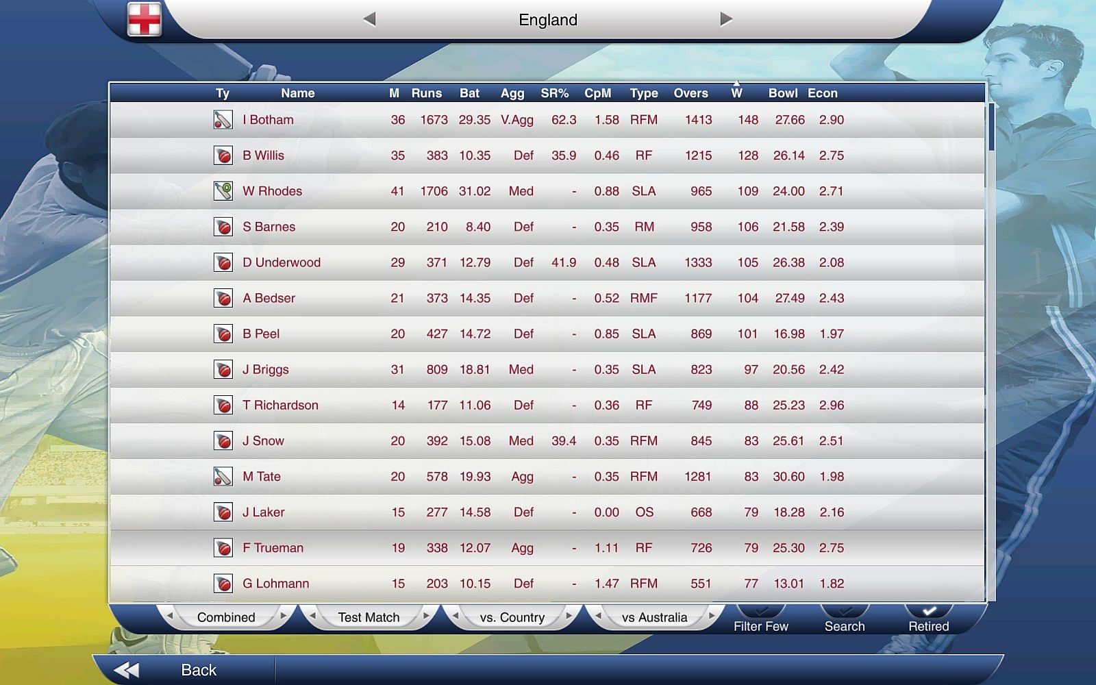 • Batting Aggression Column: Personal and combined views now display batting aggression ratings making decisions even easier.