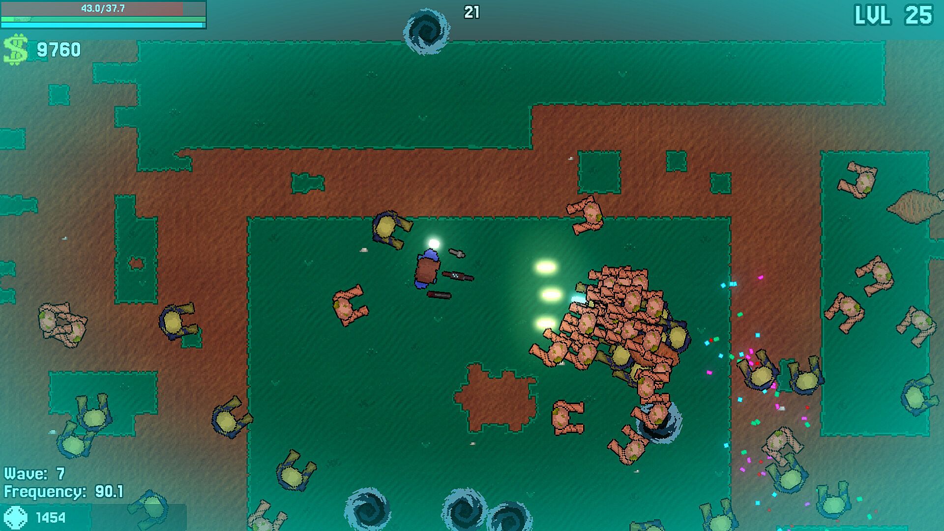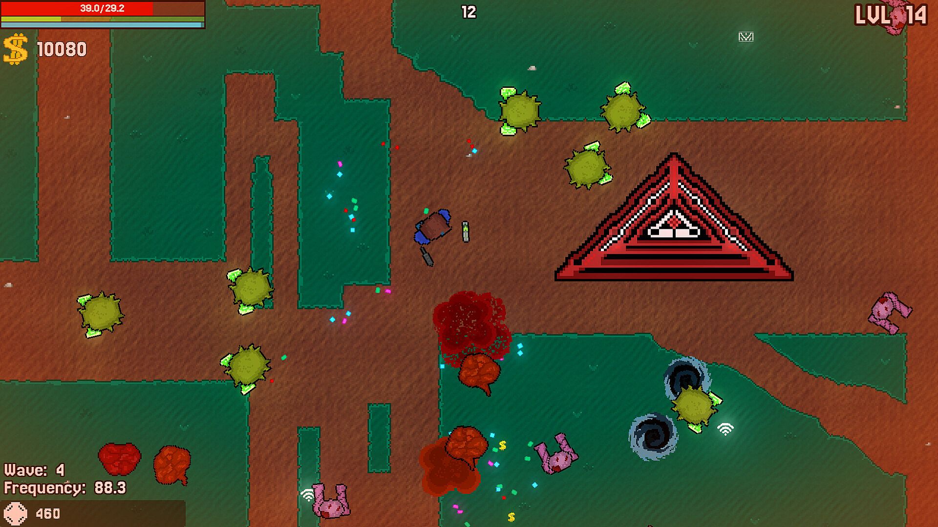 Crimson Broadcast is a fast-paced top-down survival game set in a post-apocalyptic world, where you can wield up to 3 different weapons at the same time.