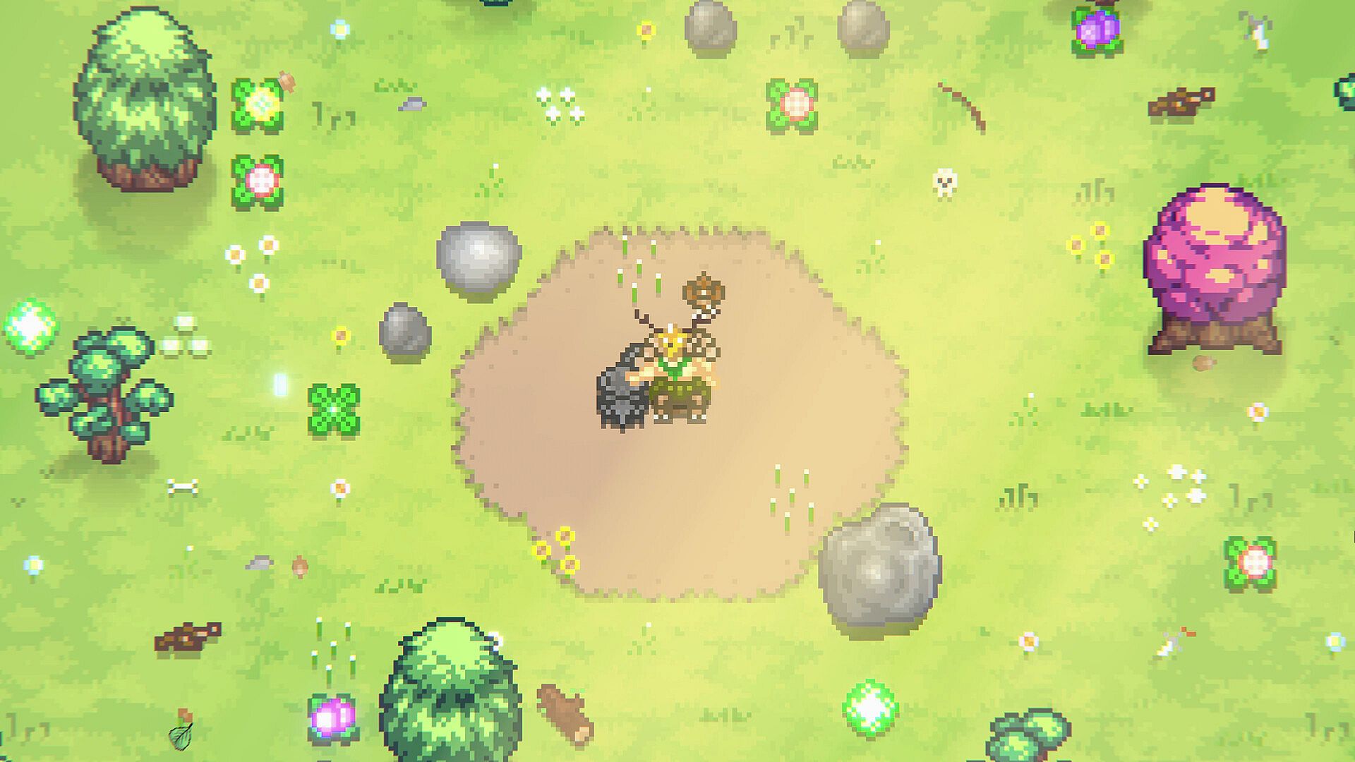 You can use worker monsters to mine energy deposits scattered across the field or open various treasure chests that appear when you get close to acquire resources!