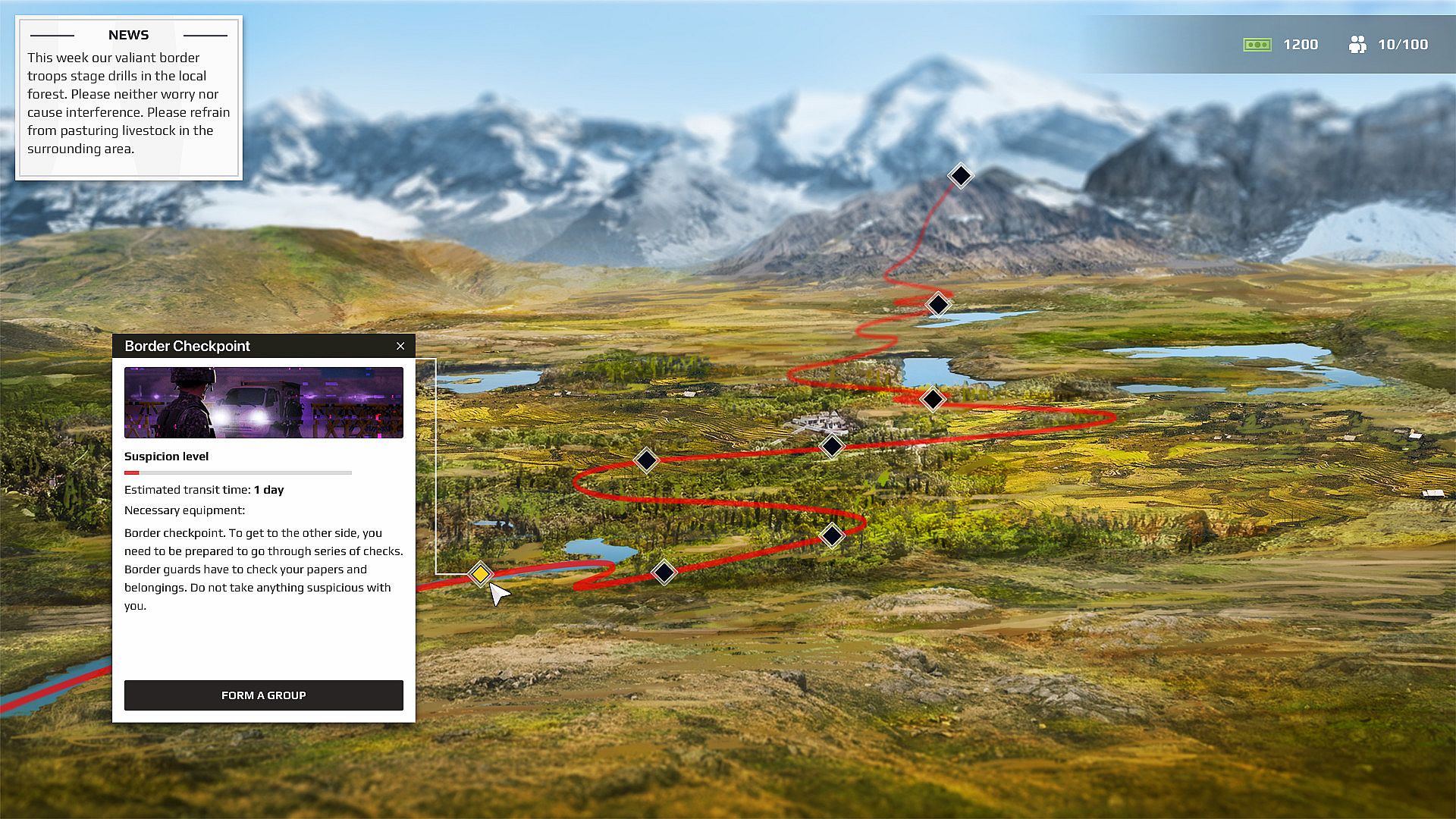 - Several border sections available for passage (Identity Check Point, river, mountains, forest)