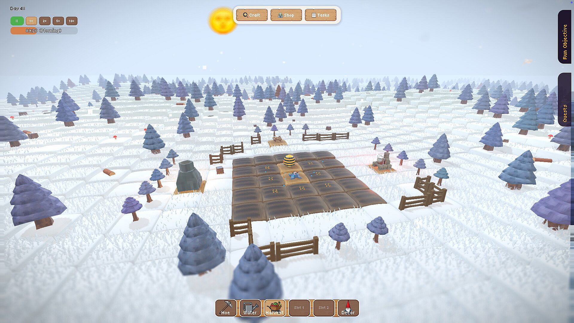 Take on challenging farming contracts across procedurally generated farmlands, each with specific objectives to complete. Harvest exact crop quantities, craft particular items, meet profit targets before time runs out, or tackle complex multi-objective challenges. Success earns you Blessings - the company's permanent upgrade currency that makes you a more capable farmer. But failure is real: run out of money, get trapped with no way forward, or miss your objective, and you'll be reassigned to a new farmland to start fresh.