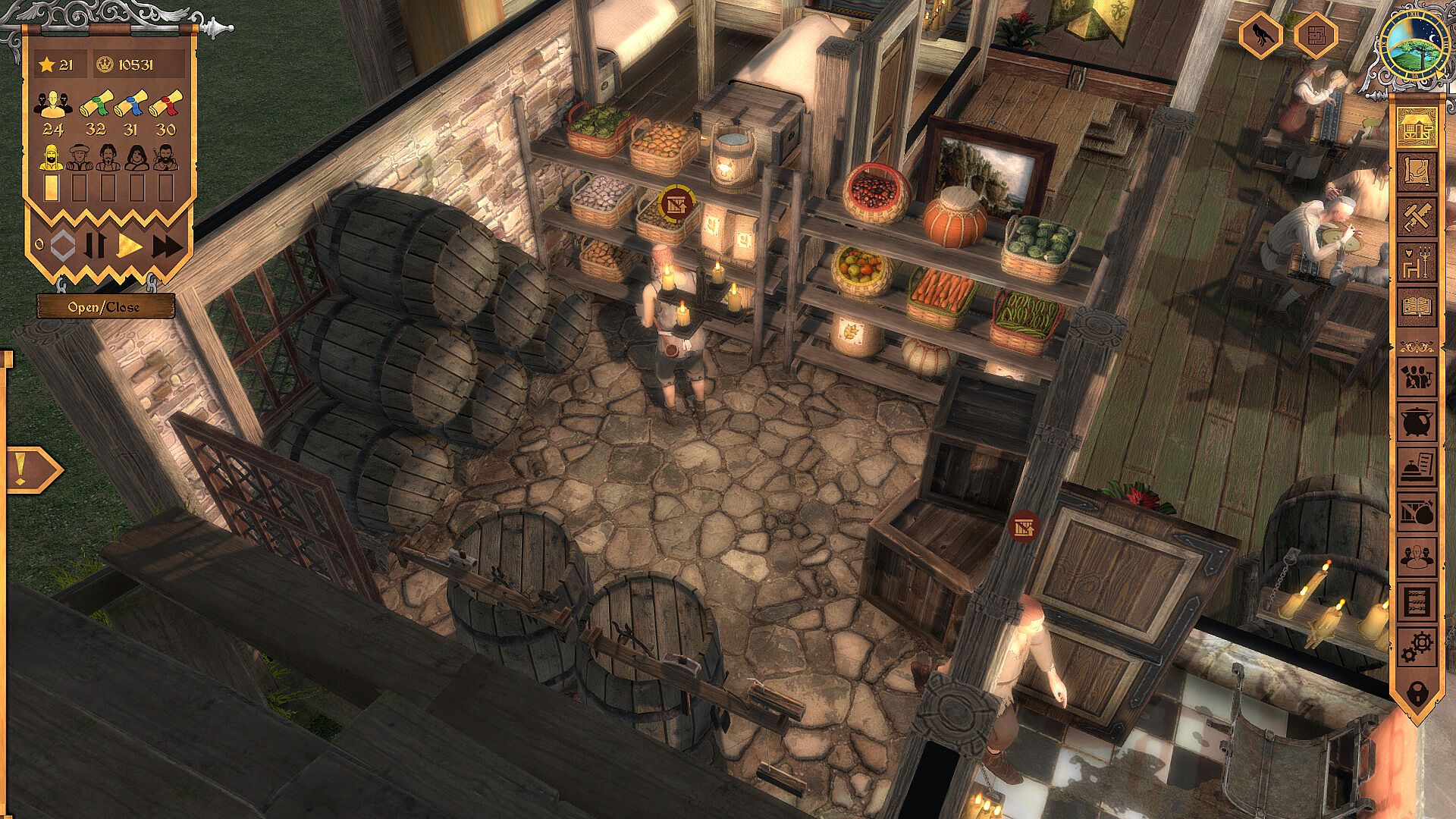 5. Complex tavern economy simulation with multiple customer groups, special guests, unique employees, and various resources and facilities tied together through a network of dependencies.