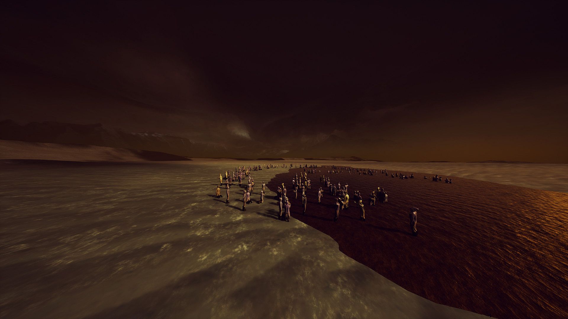 Crowd Sign: Emission is a fascinating quest story about how power and religion works. About how unimportant actions can affect the big picture. At the beginning of the game you find yourself as a demiurge lord, controlling the masses of the population, choosing its fate as ruler. Only in the course of the game, when you get to control it on a human level, can you find out the reasons that moved the people to the actions depicted in the game.