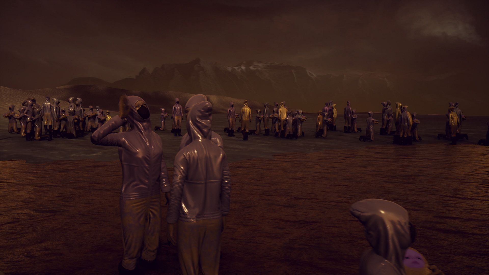 "Crowd Sign: Emission interprets the mechanisms of authoritarianism. The viewer becomes the controller of a virtual crowd in real time. An order in the form of a clear graphic symbol is sent to a semi-organized thousand-headed image. But the creatures living on the far side of the screen never follow orders in strict compliance. Due to the complexity of the communication system, the sent signal undergoes alteration, reminding us that power cannot be unlimited."