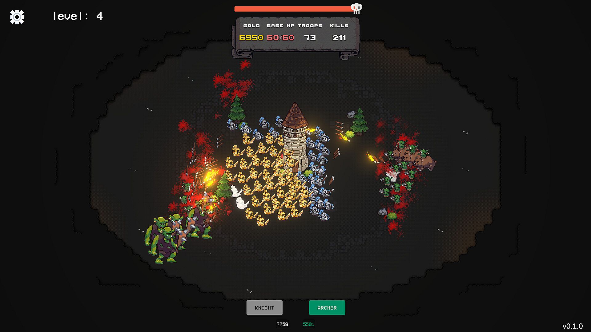 Spawn troops to protect your kingdom. Defeat goblins and trolls to earn gold. Each wave pushes your defenses harder.