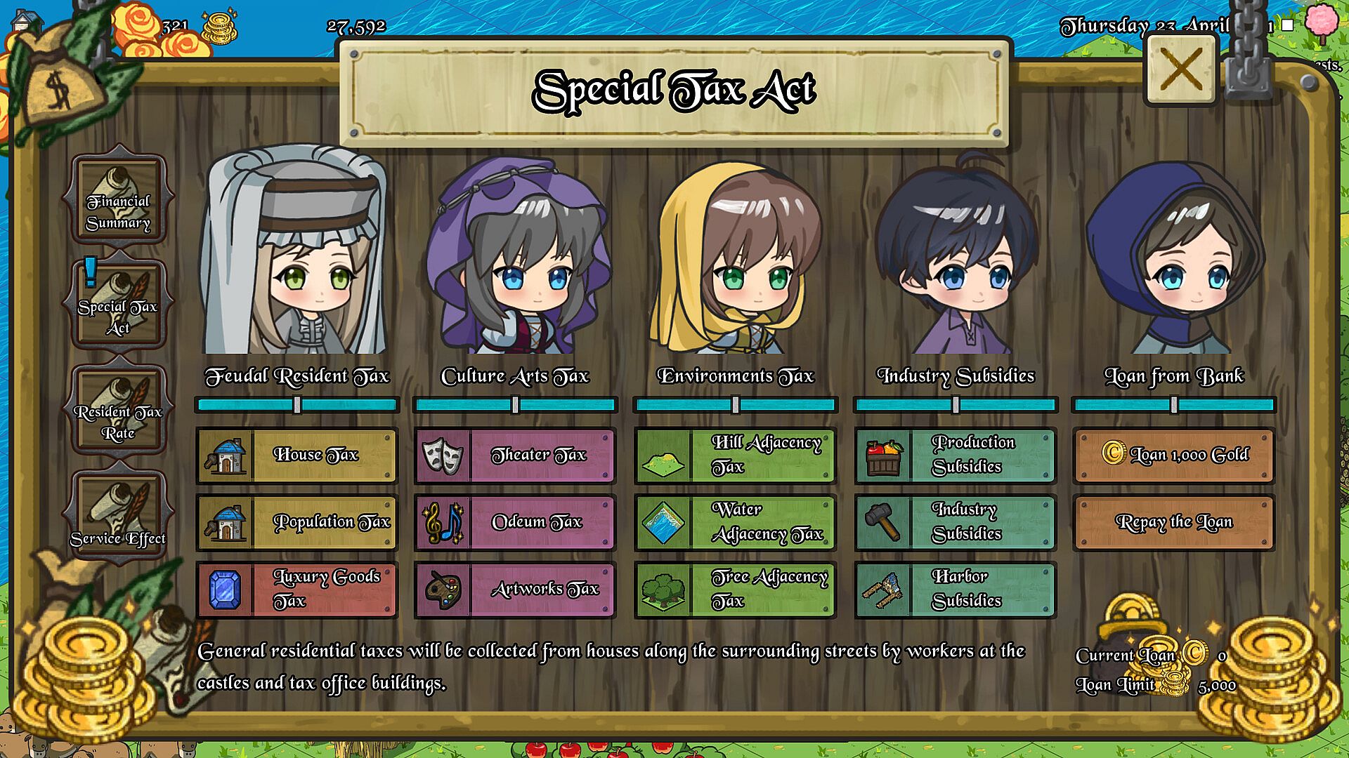 Beyond collecting taxes, you can accelerate operations in production, industrial, and port facilities by providing subsidies.
