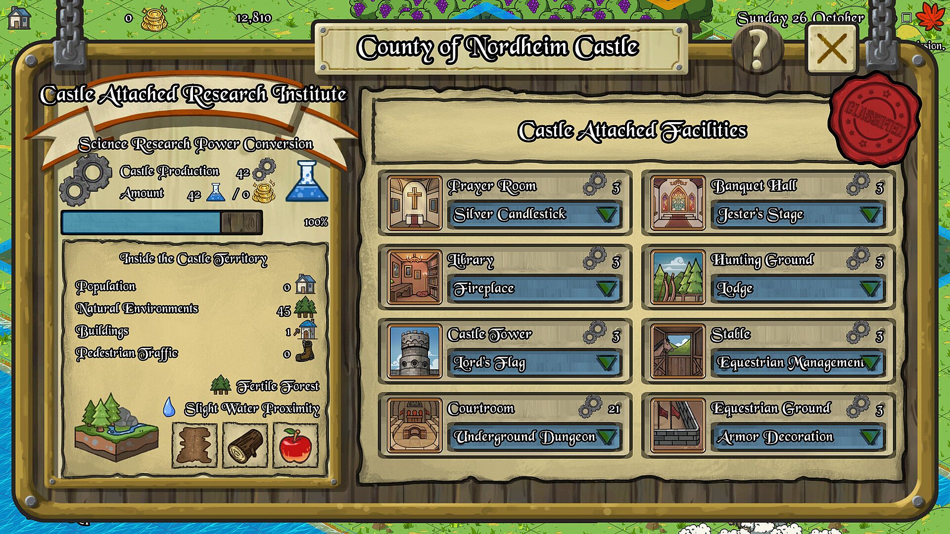 Based on the area's natural environment and the characteristics of the constructed buildings, you can enhance the castle's production by choosing specialized annex facilities that complement the surroundings, and convert this output into scientific research points or additional gold income.