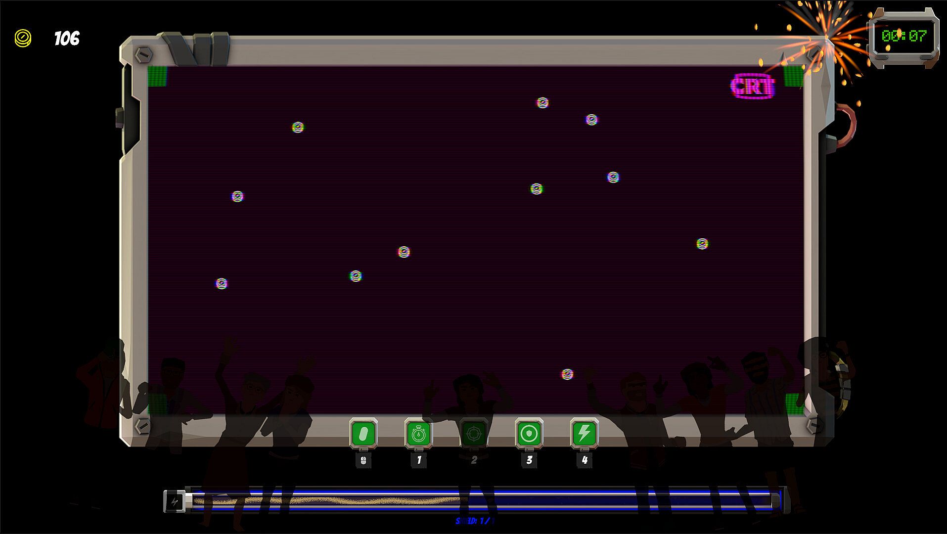 Remember the glory days of staring at a tv, waiting for that DVD logo to perfectly hit the corner? The wait is over. In CRT, you don't just watch the screen. You fight it. Use your Reflector to bounce the logo just right. Master the wacky physics to keep the signal strong!