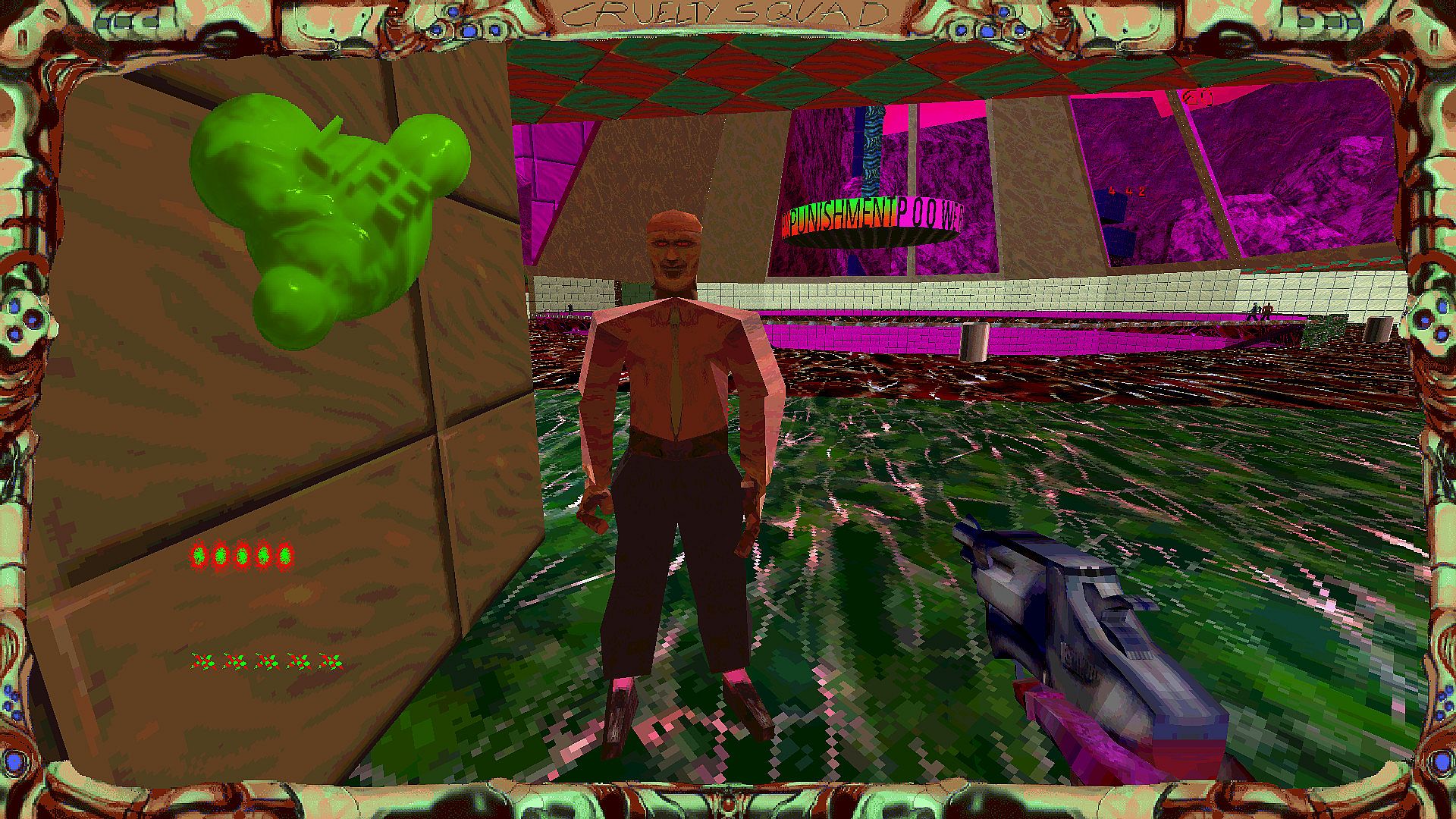 Cruelty Squad is a tactical first person shooter set in the hardcore gig economy of corporate liquidations. You're an emotionally dead combat-substance fueled grunt of Cruelty Squad, a depraved subsidiary company tasked with performing wetworks for its host conglomerate. Will you make the Corporate Arch Demoness proud or succumb to bitter tears of failure?