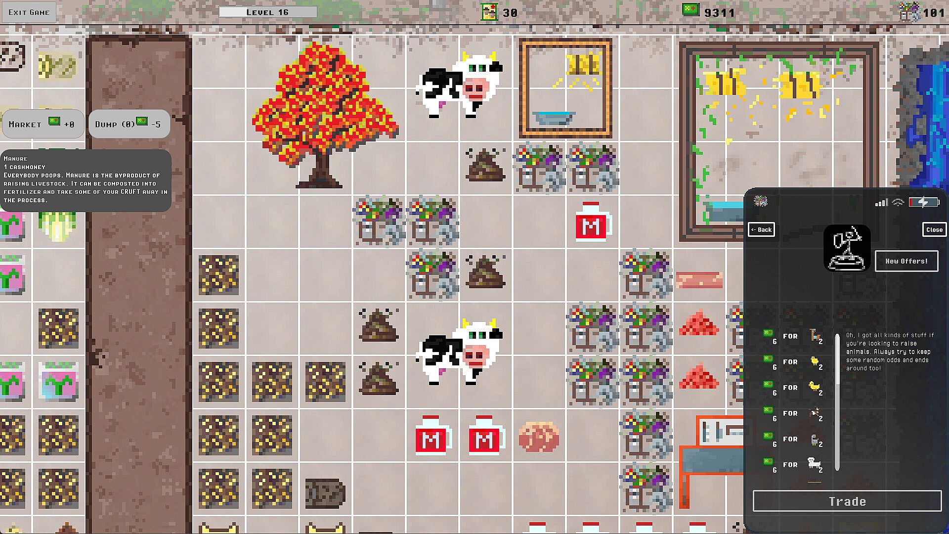 The process of crafting items also creates CRUFT. CRUFT is garbage, waste, the bits of the tomato plant you don't eat, even just wasted effort. Keep your yard clean and free of CRUFT so that you have space to do what you want to do. Or... go full goblin and make a mess. It's your yard.