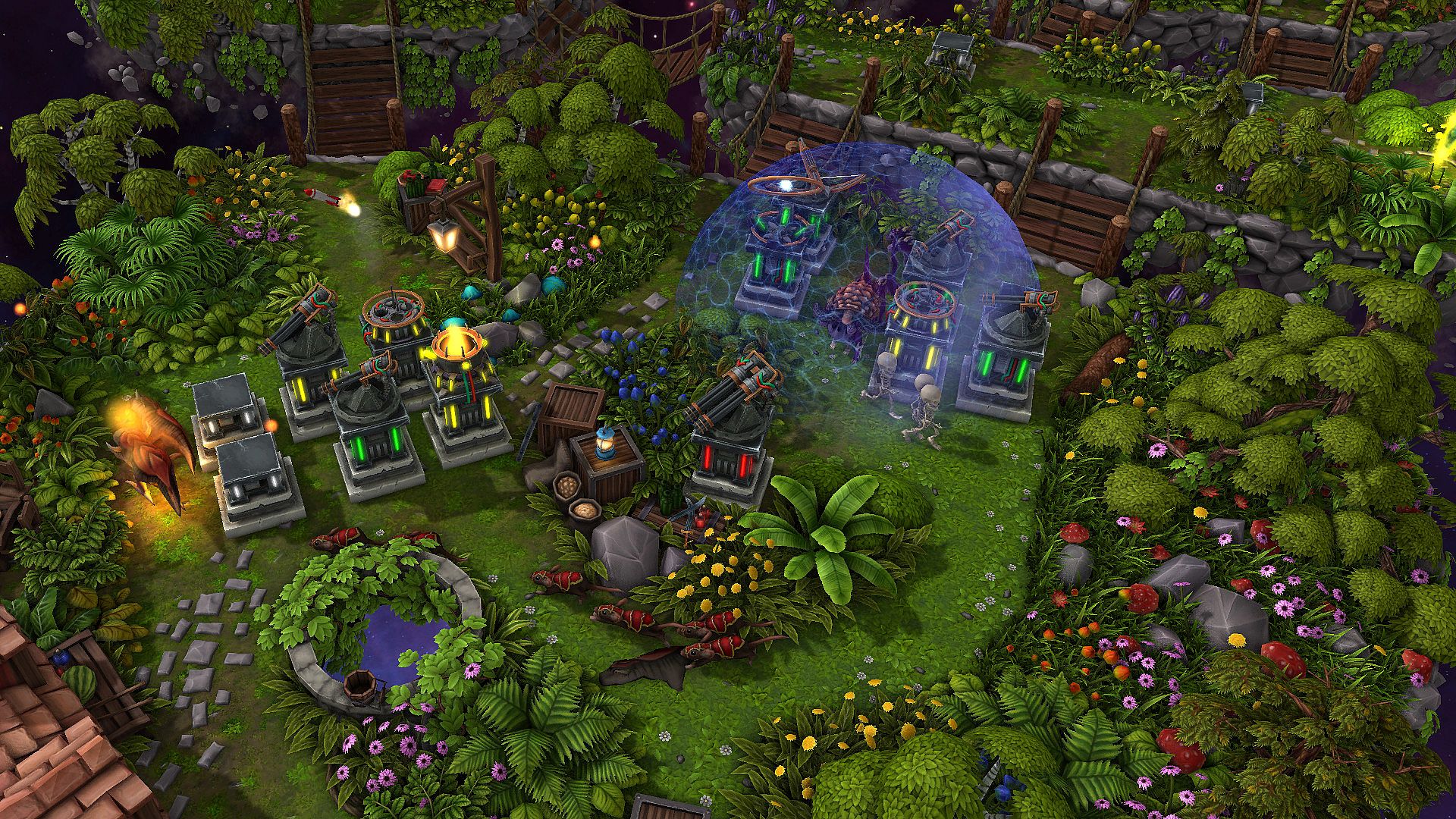 The towers have a boost ability. When enabled the tower becomes extremely efficient for a short amount of time. This make it an important mechanism to survive hard waves, but relying too heavily on this function will cost you in the long run. When used correctly the boost functionality can make your system last several waves longer than it should have done otherwise.