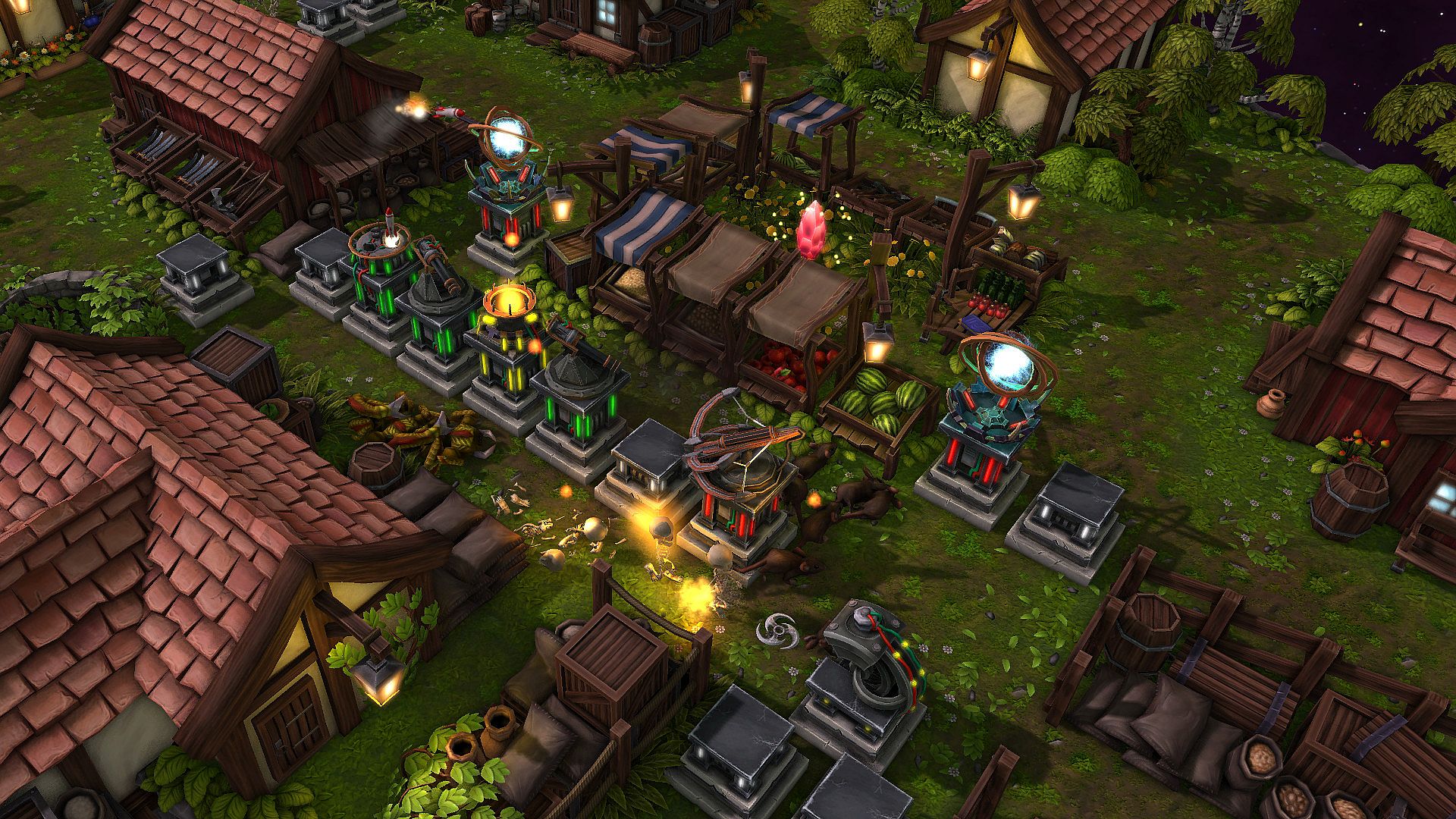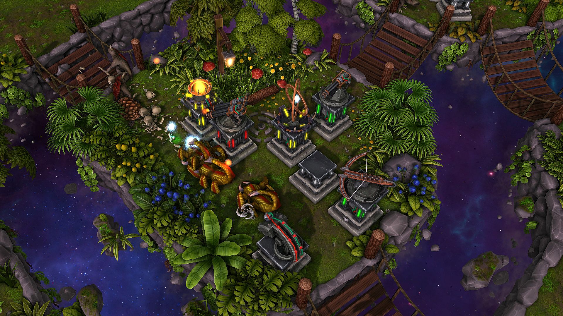 The placement of towers in this game is non-grid based. In other words you can place and rotate towers freely. This makes the placement of towers a bigger challenge and a greater opportunity than other games in this genre.
