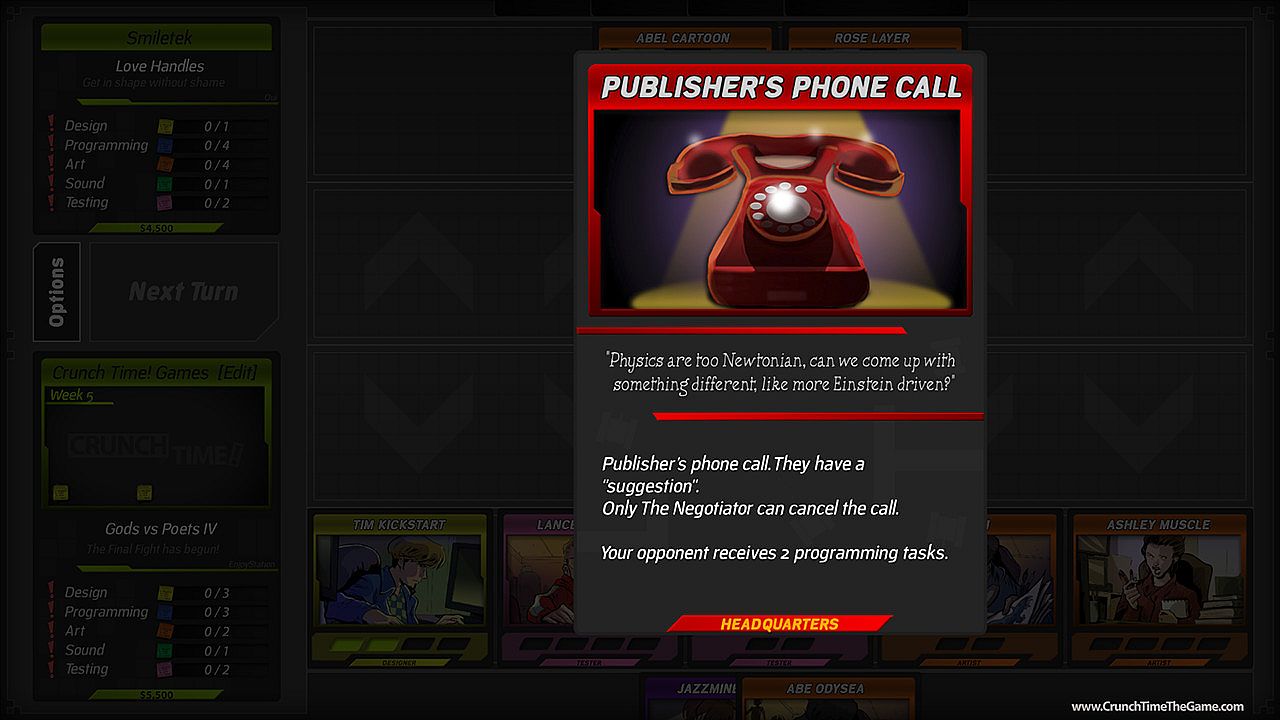 Cards will help you on your way: developers of all departments, positive cards to help you work faster; errors and problems to slow your opponent down; and much more which you'll discover as you play.