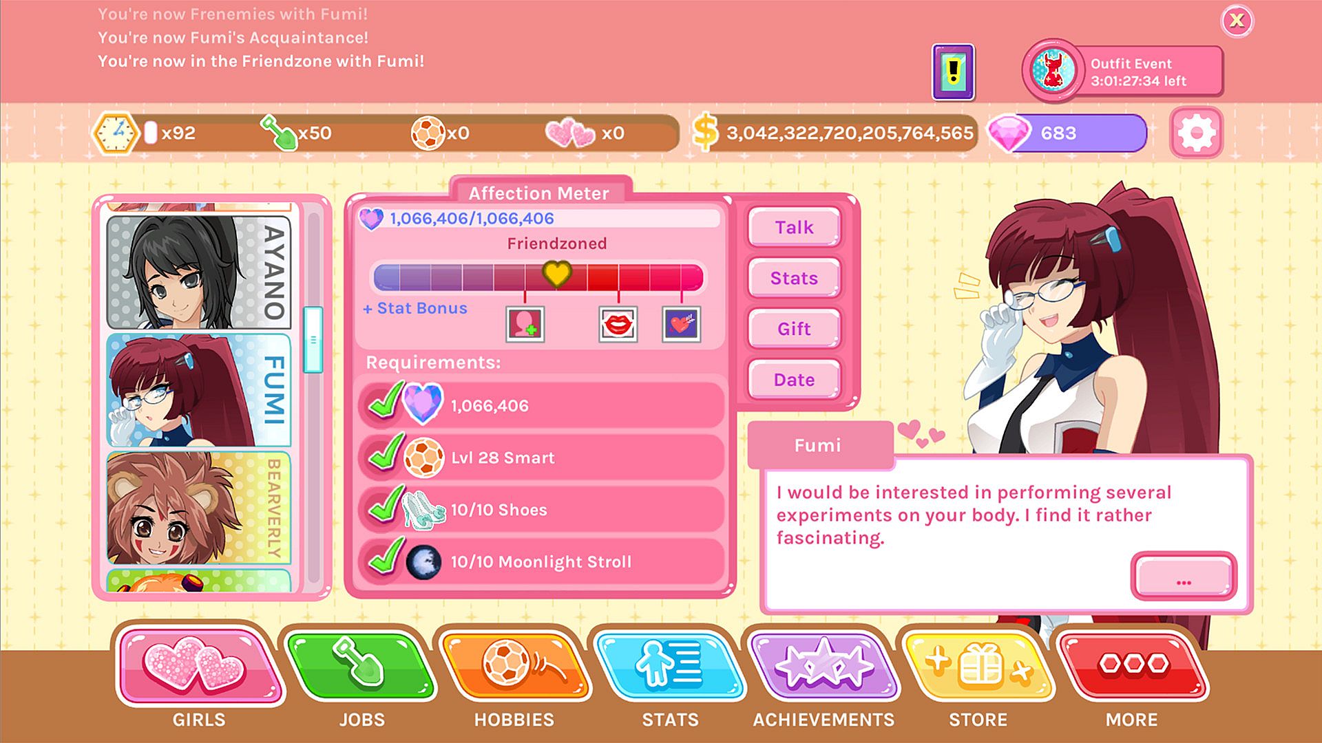 TONS of special outfits to dress your waifus in.