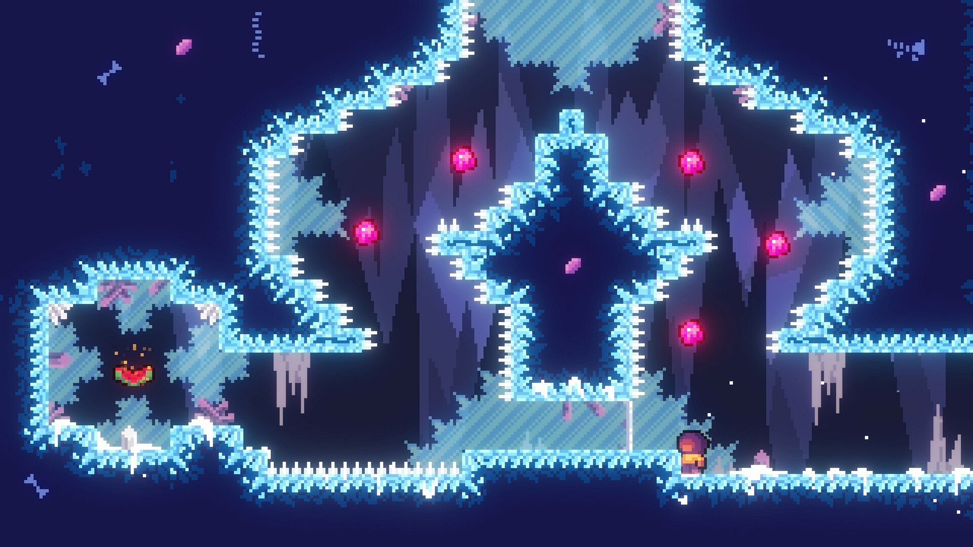 Clean, readable pixel art that keeps the focus on precise movement, clear level design, and satisfying visual feedback.
