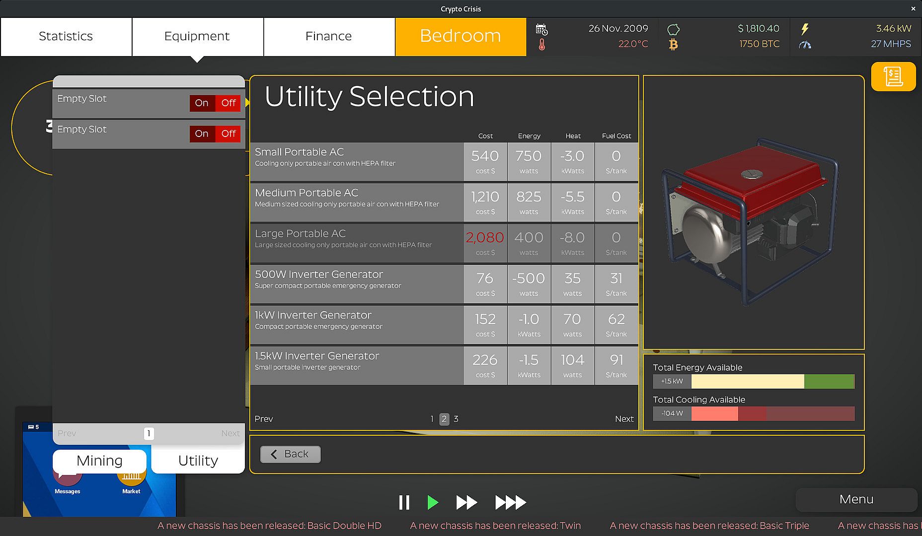 - Buy and upgrade utility equipment to help you manage energy consumption and heat output