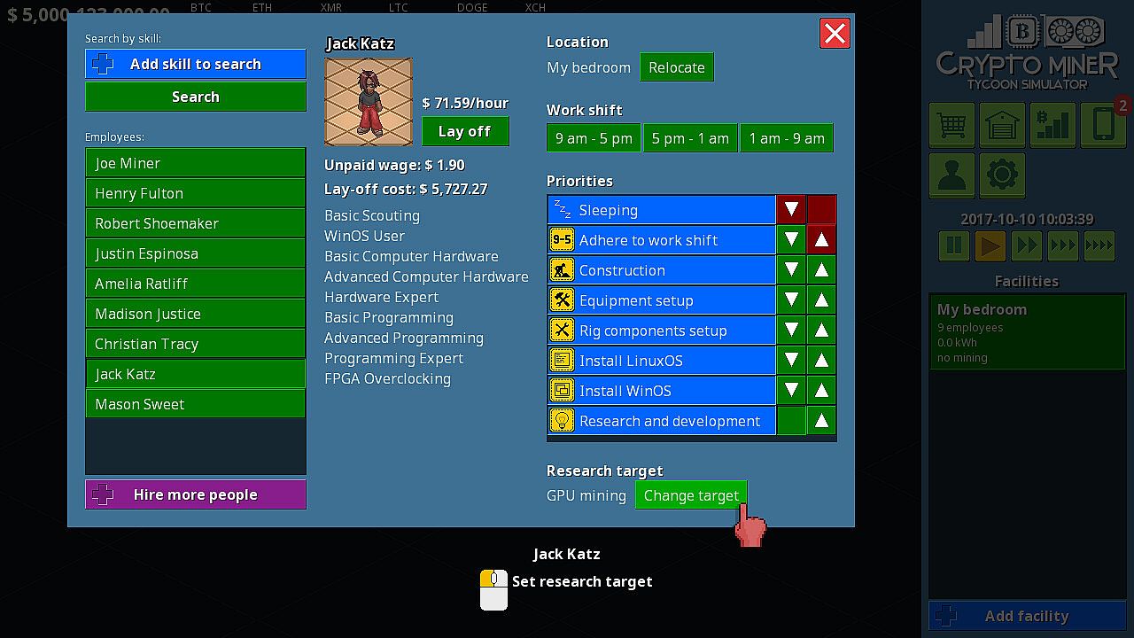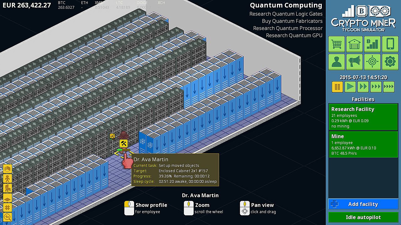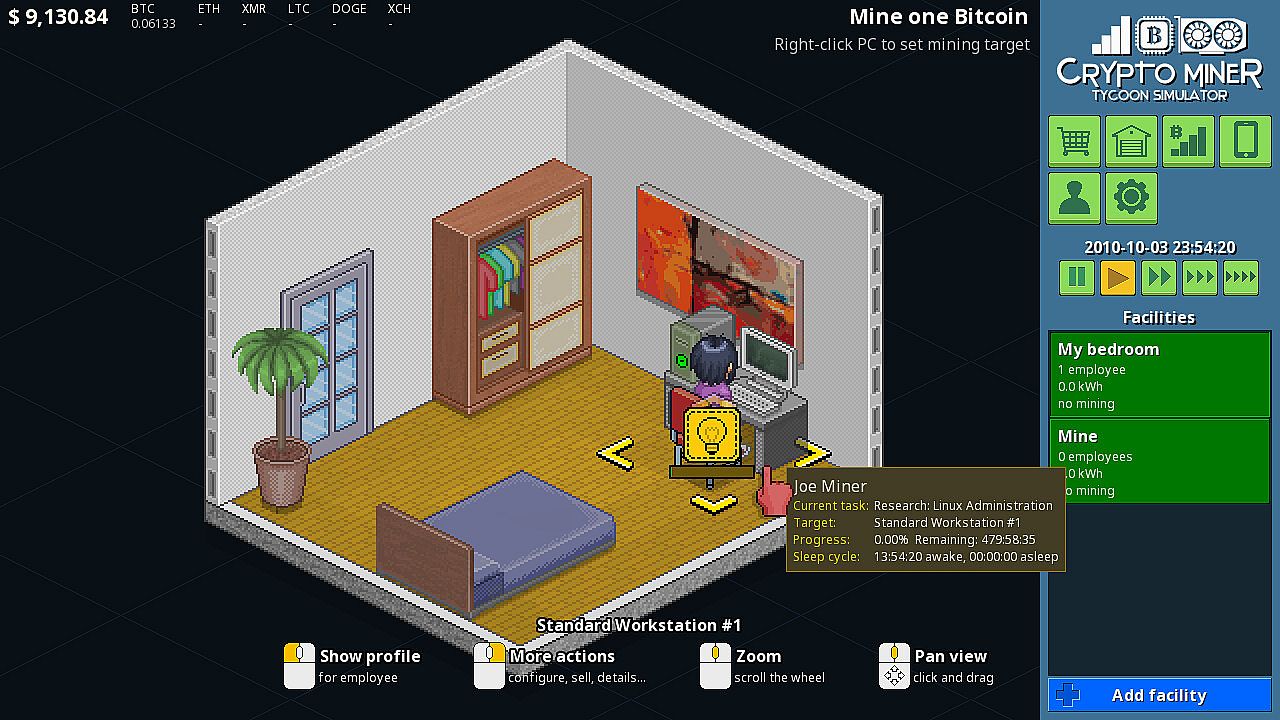Crypto Miner Tycoon Simulator™ is a complete simulation of the cryptocurrency mining business. The Starter Edition includes one full scenario and story from the main game. In this one, you start as a teenager whose wealthy father is hyped about digital currency. He isn’t really tech savvy, so he gives you some cash and challenges you to build a crypto mining business: