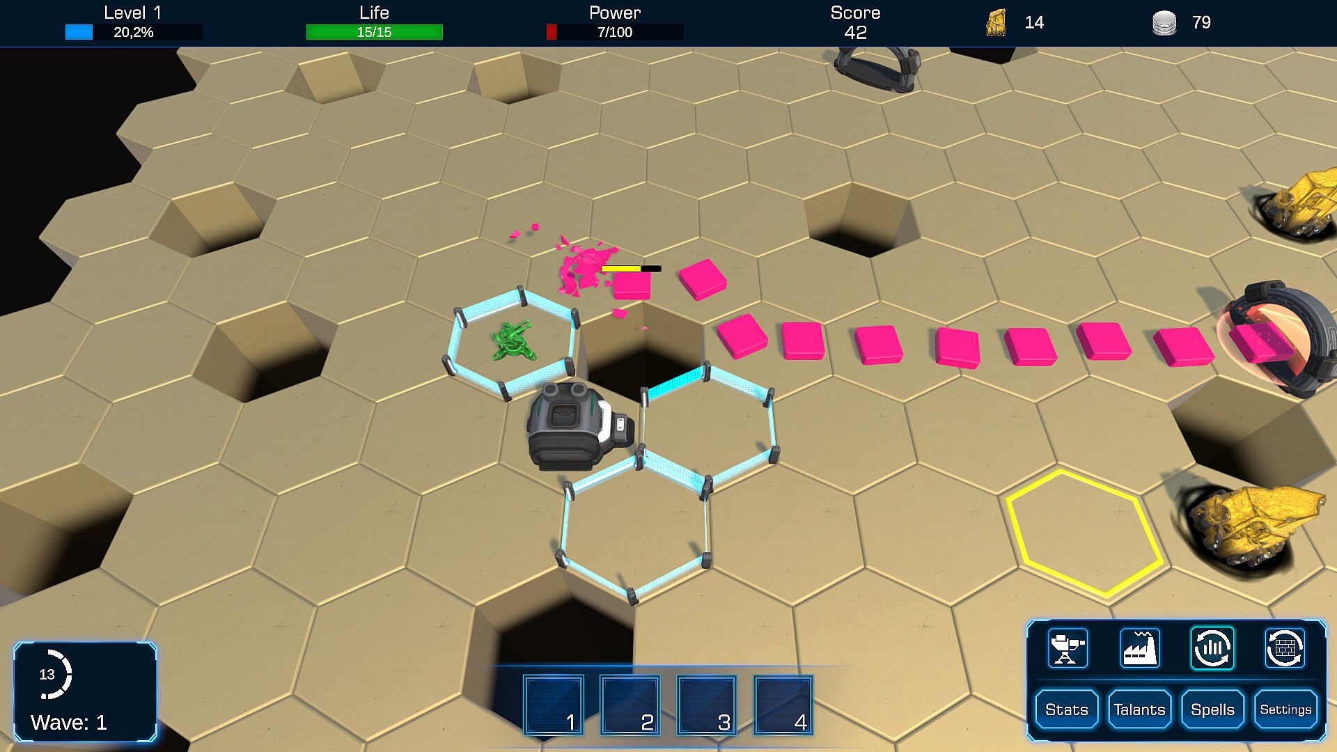 In Cryptower, the core loop revolves around setting up towers to fend off incoming enemies. You start by placing and upgrading these structures, tweaking their parameters like range or damage to handle tougher threats. As waves progress, you unlock abilities and talents that add layers to your strategy, such as boosting tower efficiency or introducing special effects. The clicker aspect comes through in the incremental improvements, where repeated actions build up your power over time. Roguelike elements shine in the random generation of certain features, ensuring no two runs feel identical. This setup keeps things engaging, as you must adapt your tactics on the fly to counter varied enemy patterns.