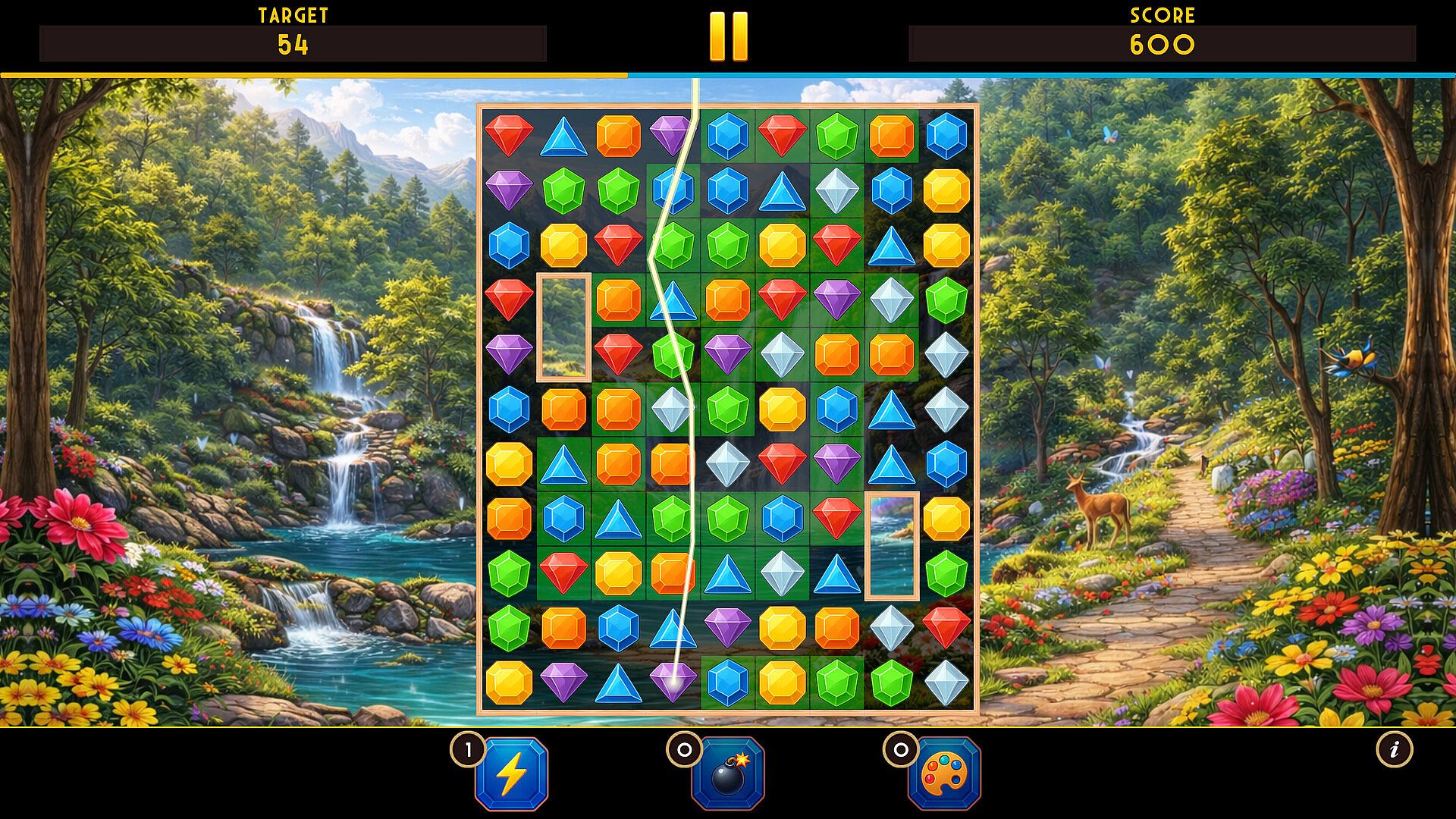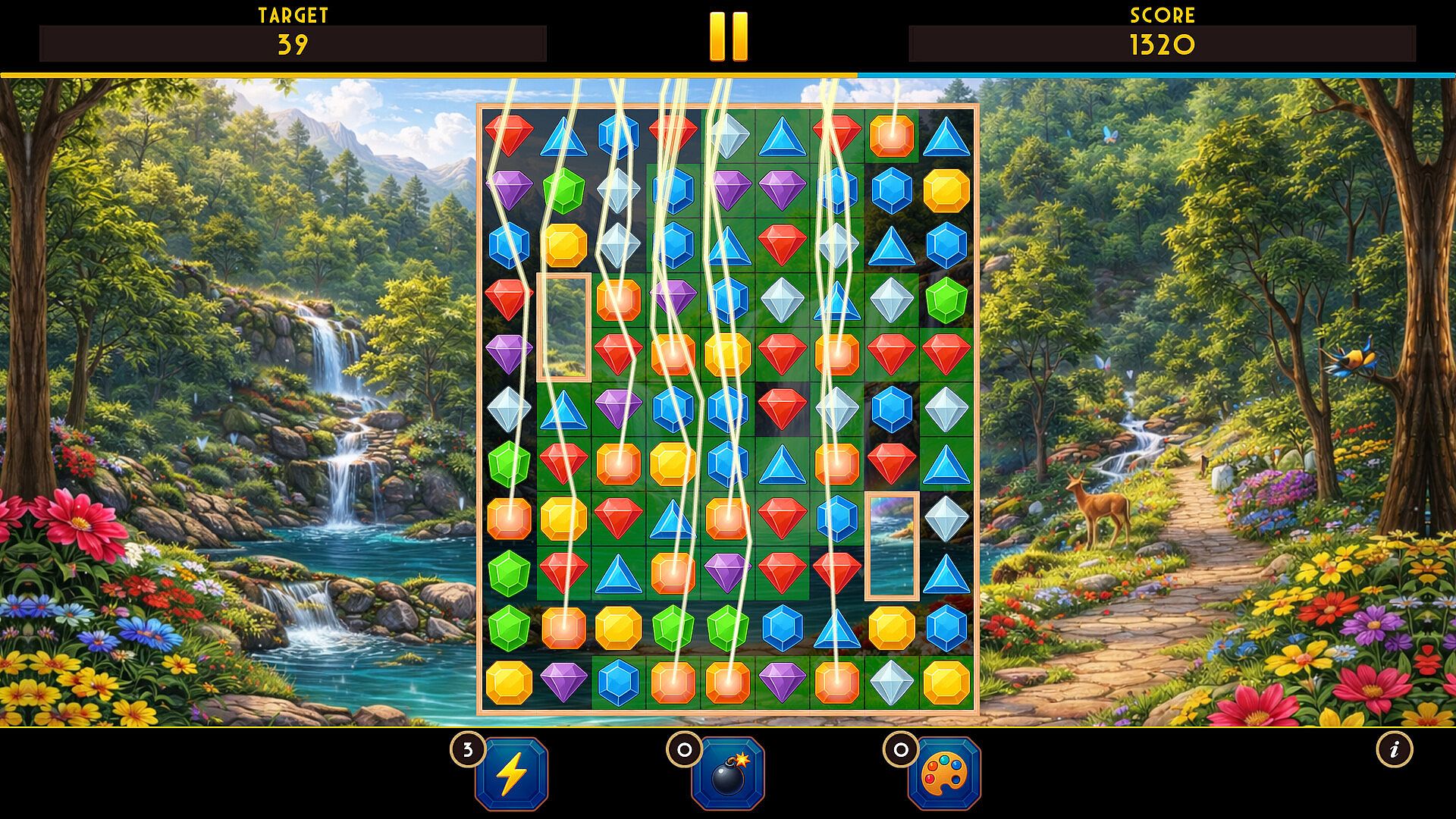 Special gem combinations unlock helpful effects, allowing you to clear larger areas of the board when needed.