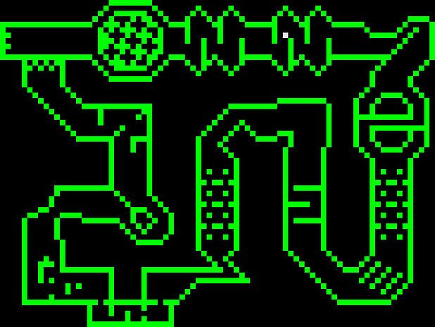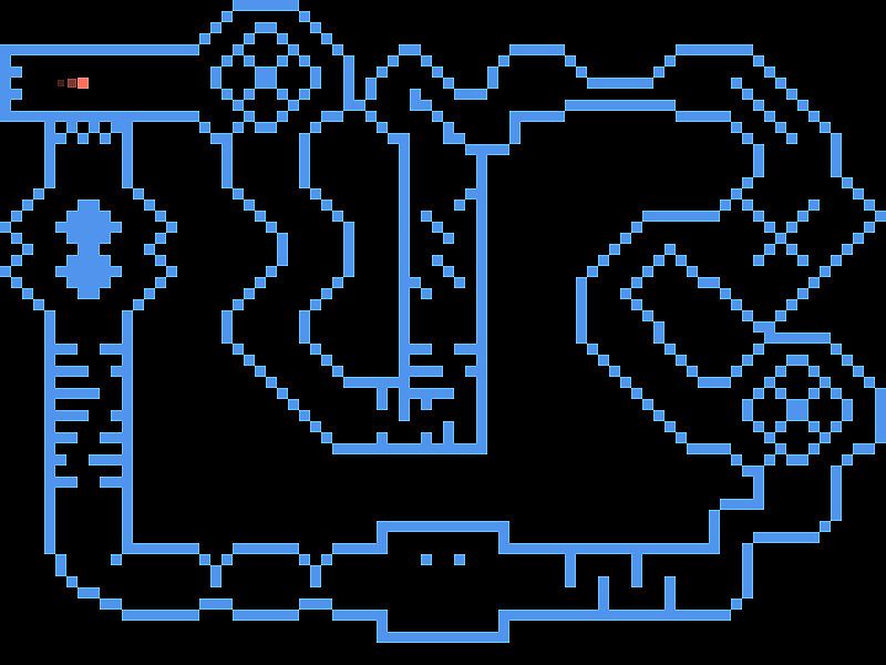 In (almost) 1-bit pixel graphics, you control a player that looks like a small block. You navigate through a maze of blocks. You control your character (who has cute little eyes) in a 2D top-down view. Your direction can change in 45° increments and you must time your movements correctly. Nasty obstacles, moving parts and environments that react to your movement will make it difficult for you to reach your objective without colliding.