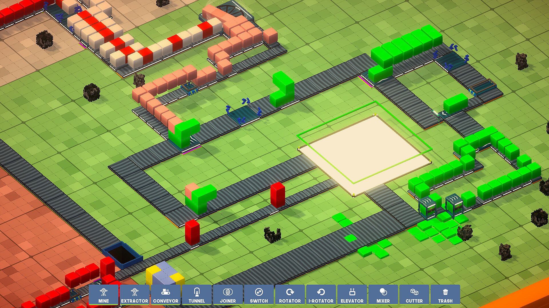 You start with basic tools and a handful of cubes, but soon you'll unlock advanced technologies that will transform your factory into a precision automated system. You use conveyor belts to move cubes between workstations, where specialized machines process them according to the specifications of each order. As orders become more complex, you'll need to optimize your production, balancing efficiency and creativity to meet color, shape and composition requirements.