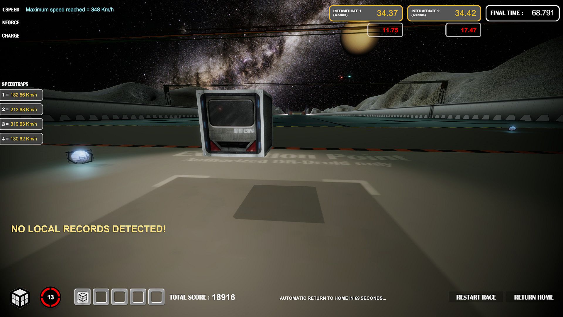 - 3 LEADERBOARDS FOR EACH TRACK (BEST TIME, BEST SPEED & BEST SCORE)