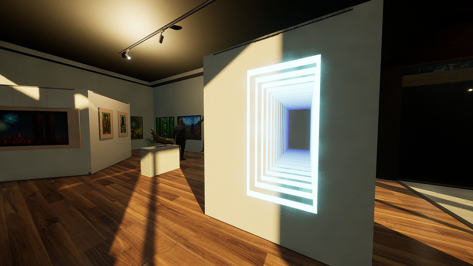 You enter a gallery named Tesseract, but soon the exhibits fade, the walls collapse, and you’re left wandering strange cubic worlds — each obeying its own logic.