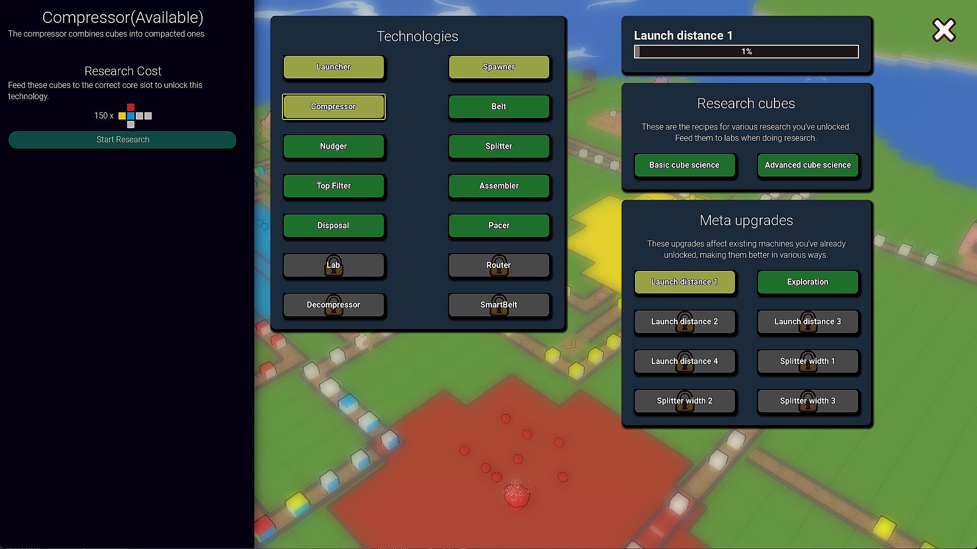 Everything you produce in Cubetory is a cube, and all cubes end up in the PIT. Early game, that means mining cubes and painting them a specific pattern. Complexity quickly ramps up from there with assembly chains, byproducts, non-deterministic processes, and more.