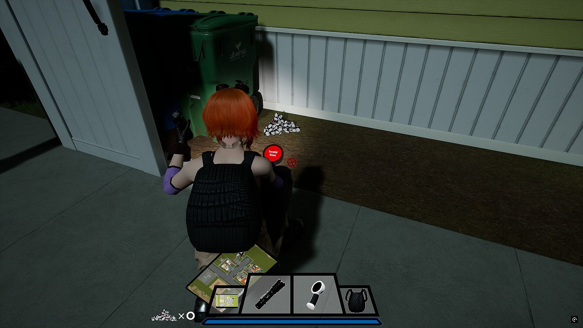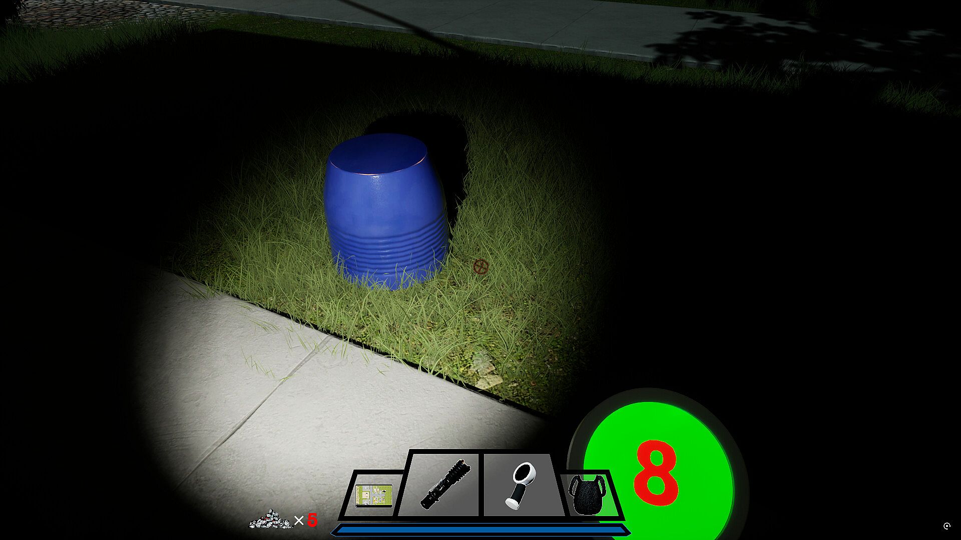 Explore a small neighborhood cul de sac of four houses to locate a single item of a hundred randomly dispersed items throughout the area. You'll also be tasked to locate "sacred burn materials" to use in the aid of destroying the entity's personal item, also randomly dispersed throughout the map.